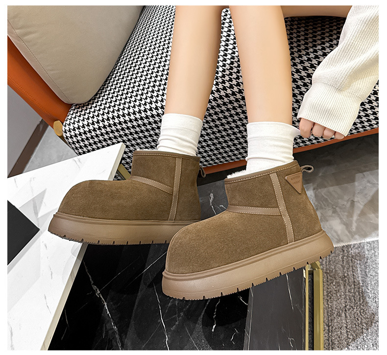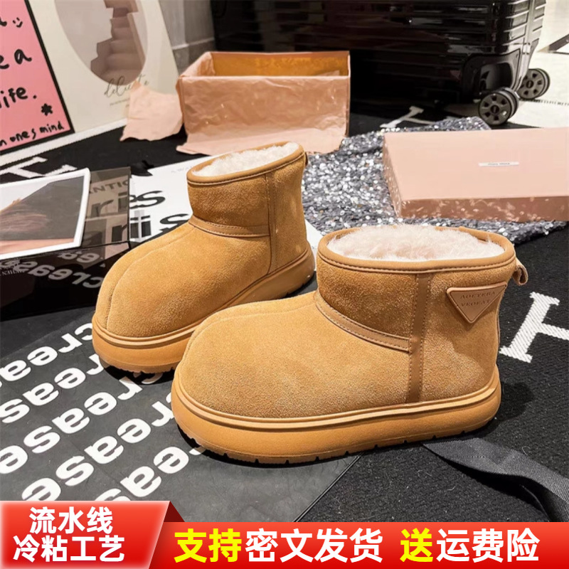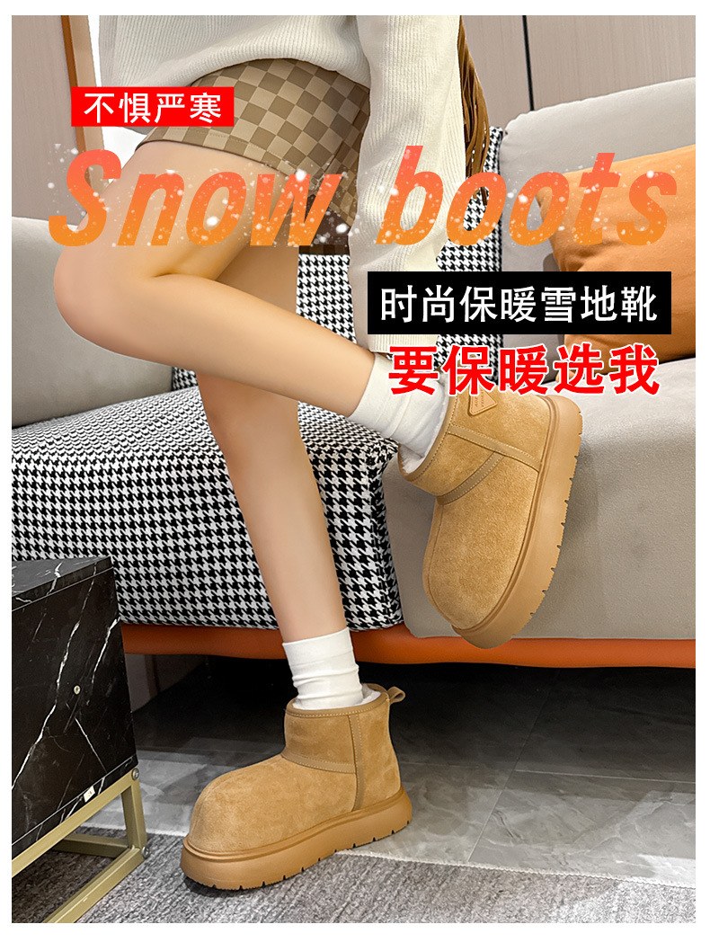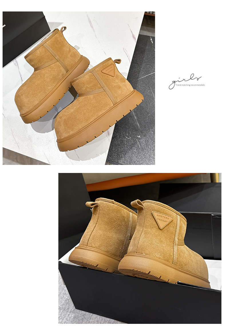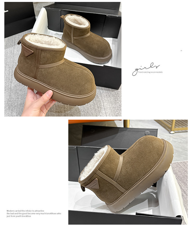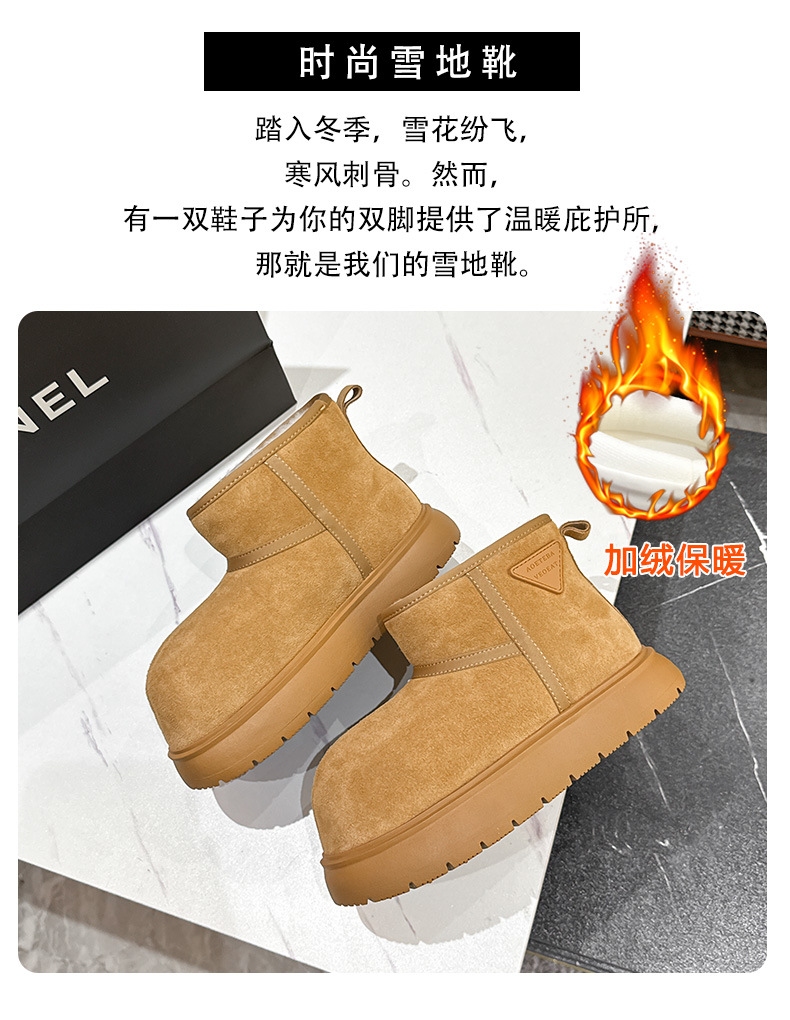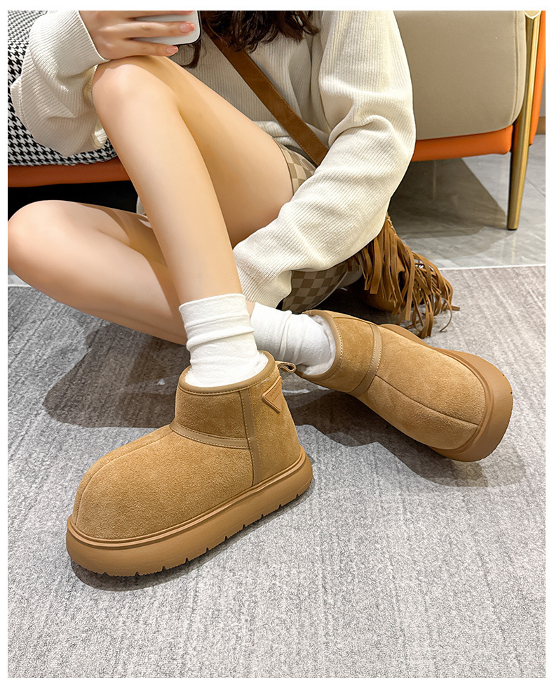 頭の醜い萌え雪地靴女2024ファッションブーツとベルベットの厚い中筒綿靴毛羽綿靴保温ブーツ
