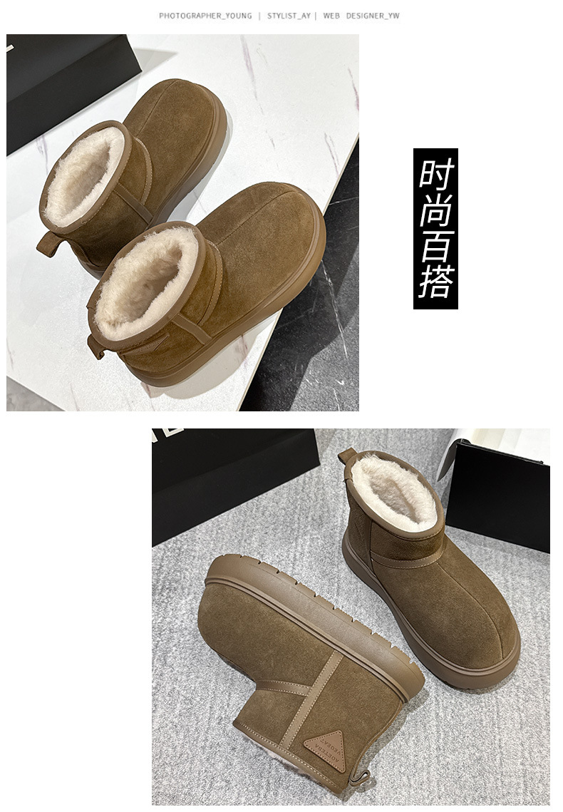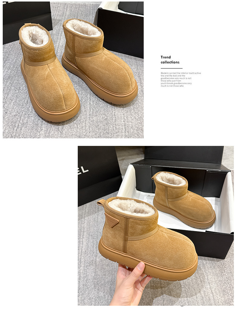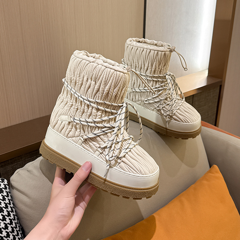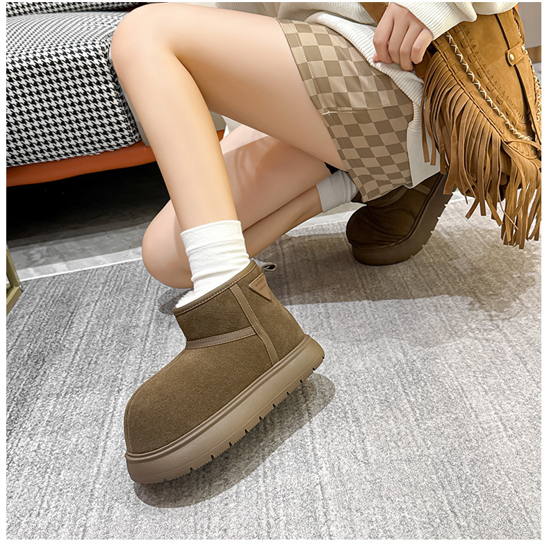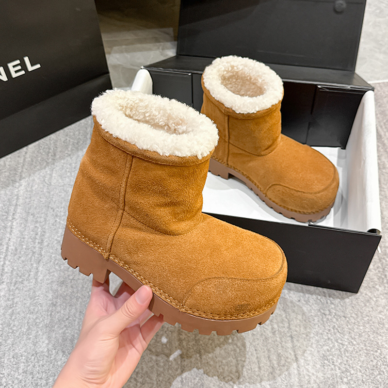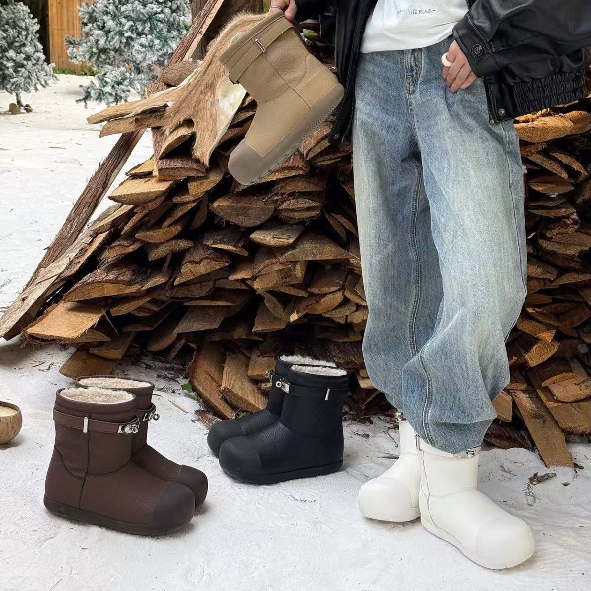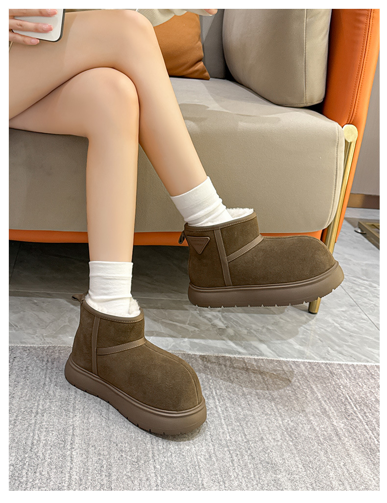 頭の醜い萌え雪地靴女2024ファッションブーツとベルベットの厚い中筒綿靴毛羽綿靴保温ブーツ