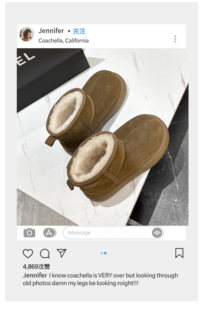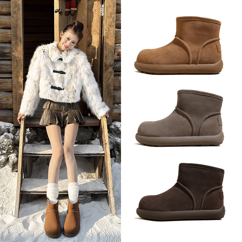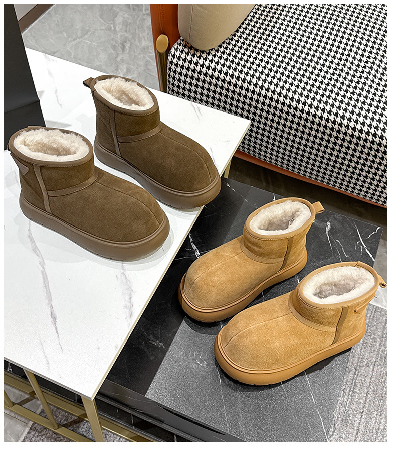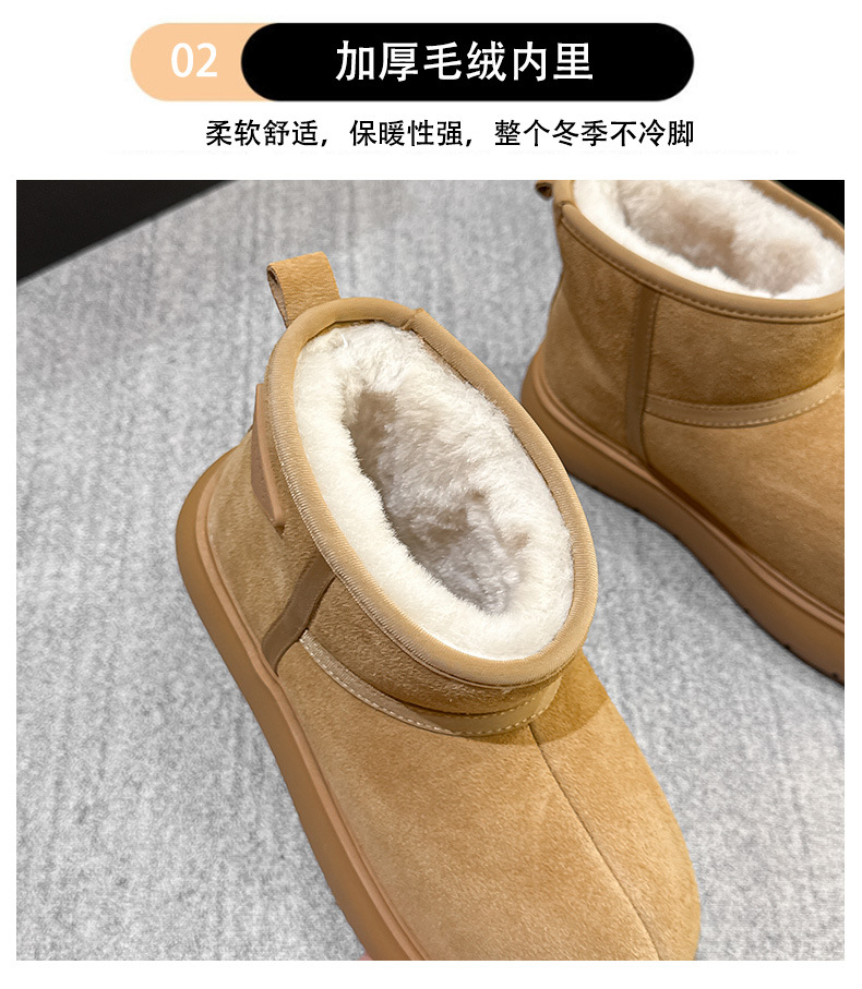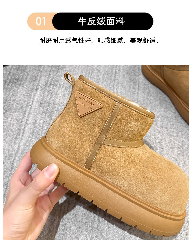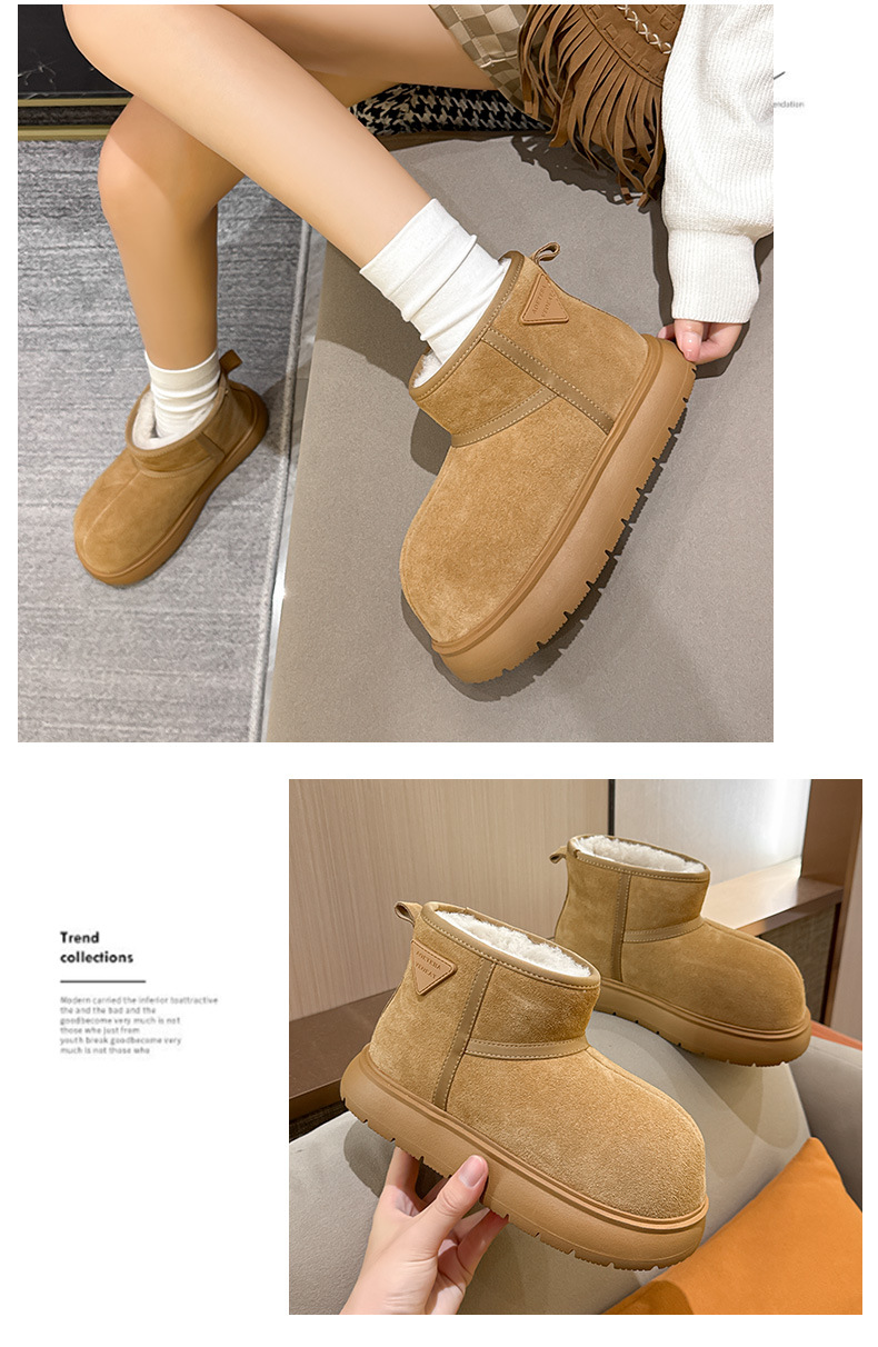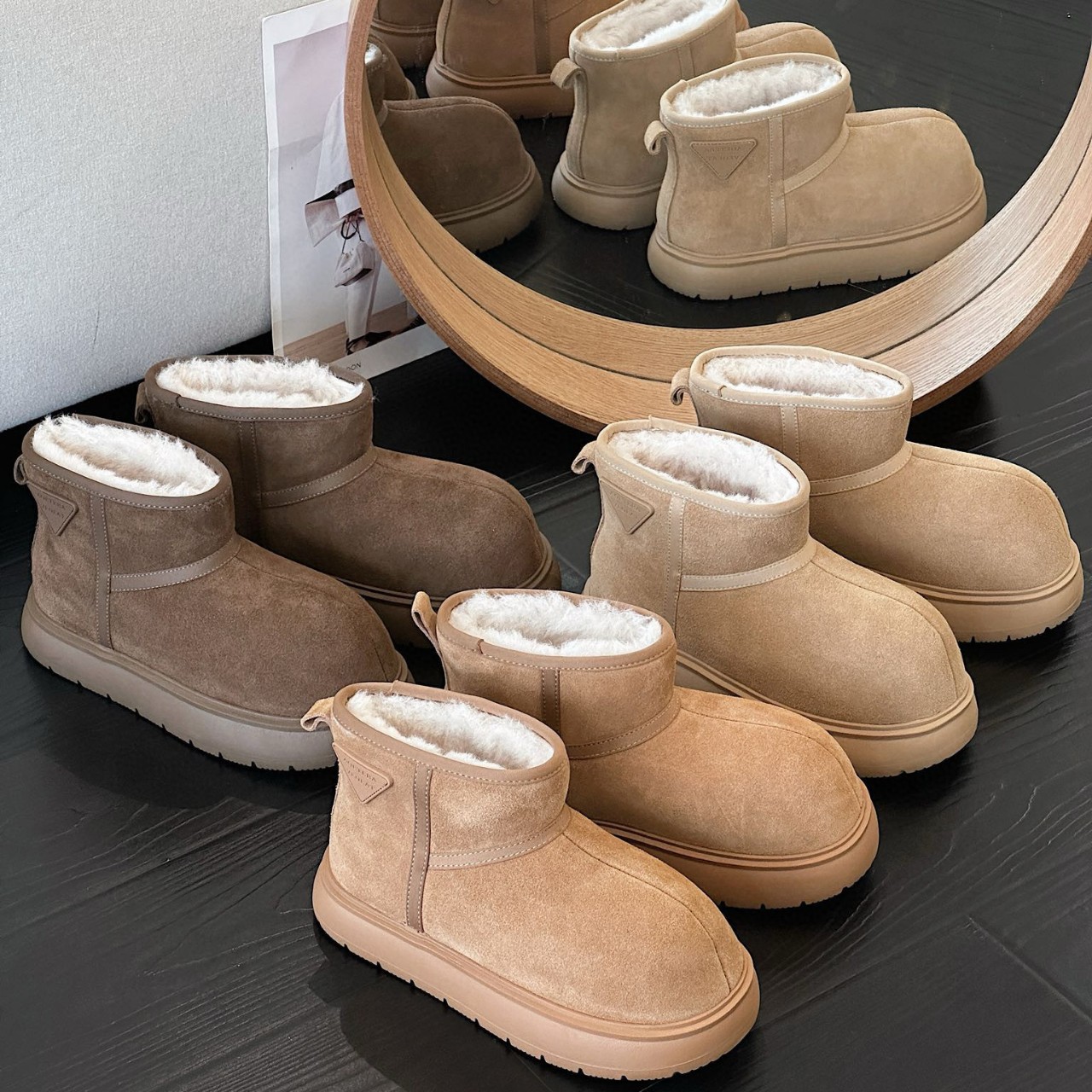 頭の醜い萌え雪地靴女2024ファッションブーツとベルベットの厚い中筒綿靴毛羽綿靴保温ブーツ