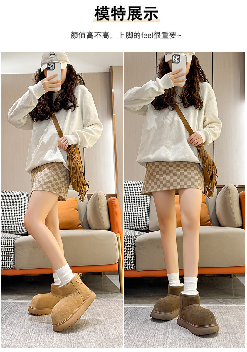 7cm厚底雪地靴2025冬季加绒加厚保暖棉鞋松糕勃肯鞋子女半拖短靴