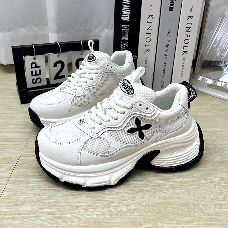 厚い底のお父さんの靴の女性の2024秋の新型のネットの通気性の靴の小さい背は高くなってレジャーの百合の運動靴になります。