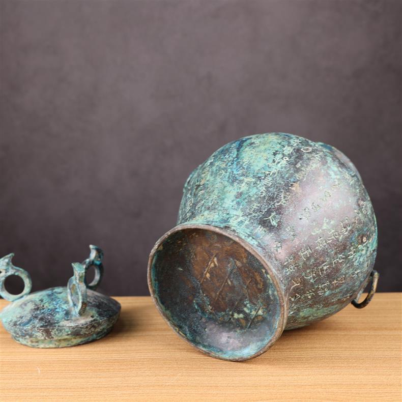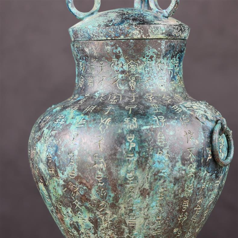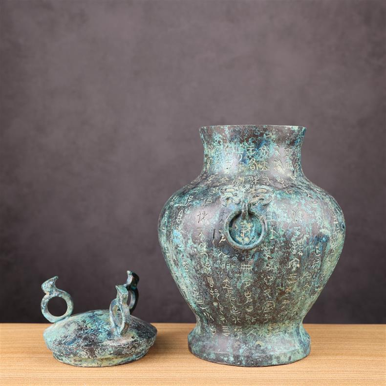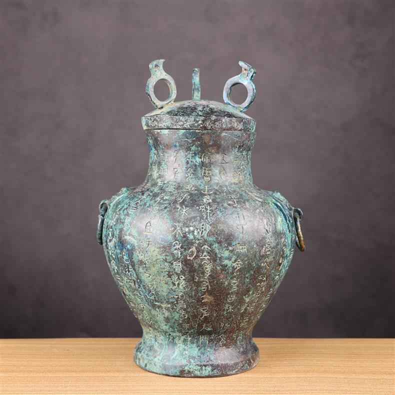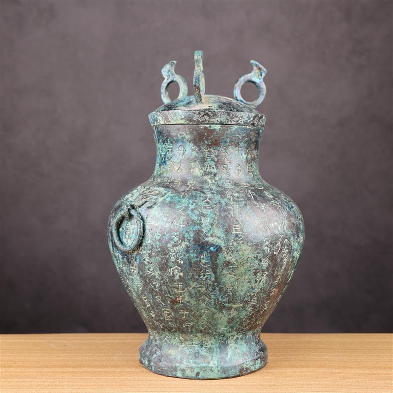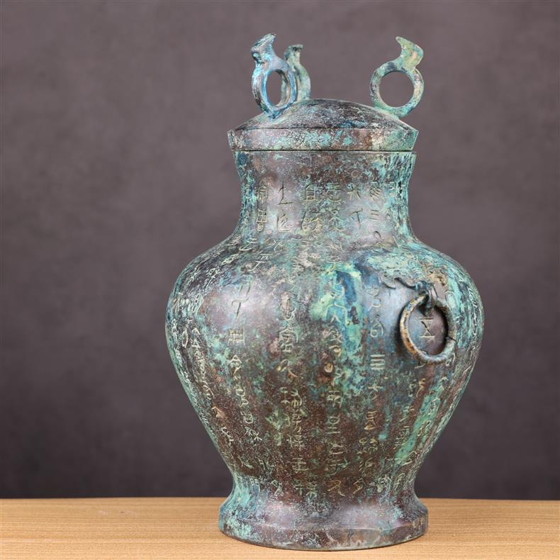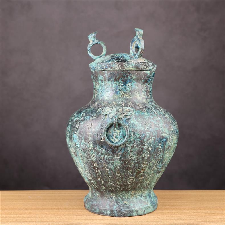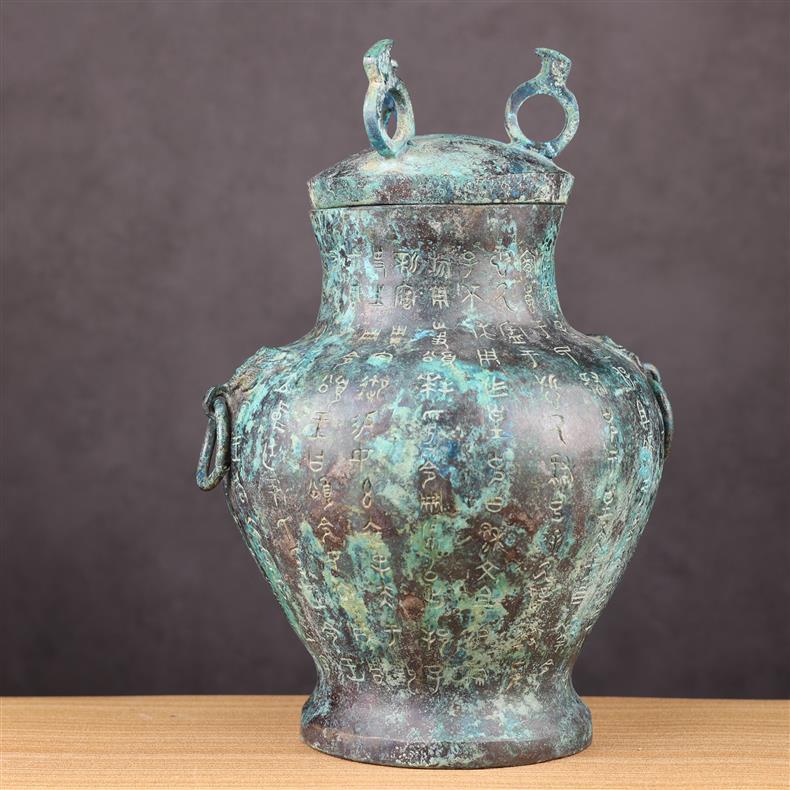 古青銅器碑文双環瓶蓋付き銅壺盛酒器レトロ家庭工芸品置物