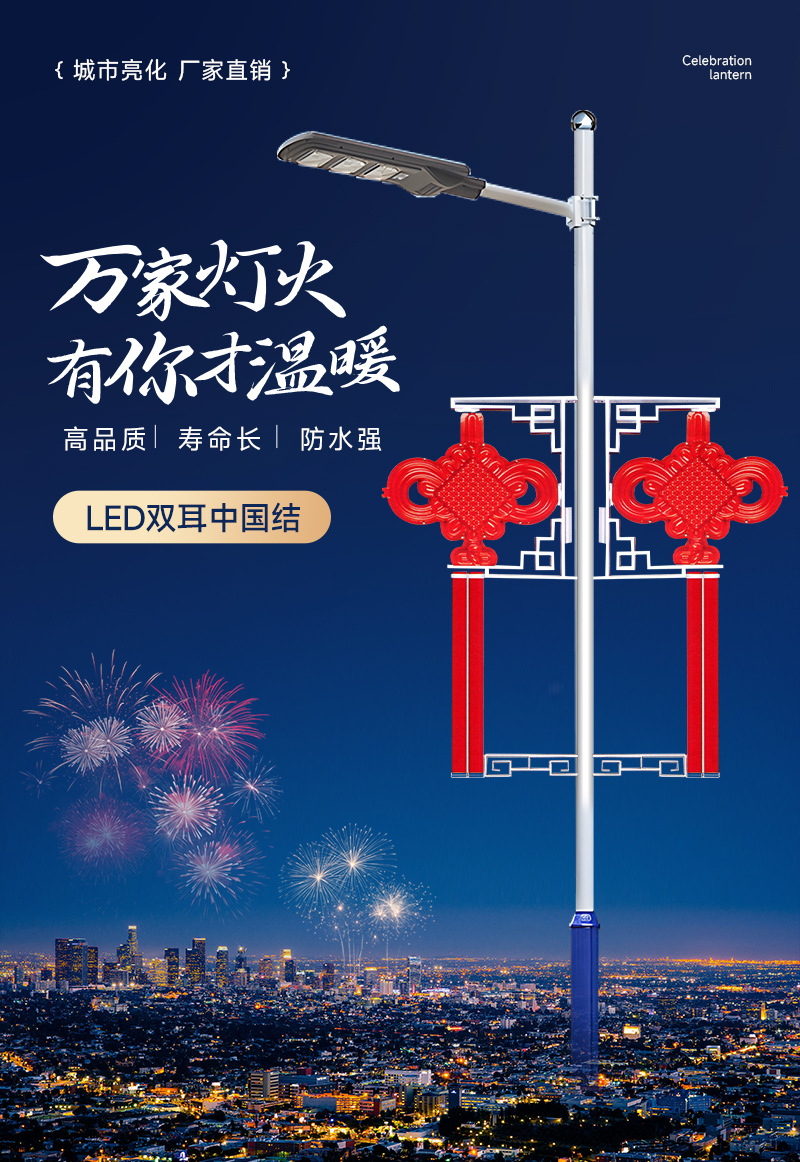 太陽エネルギー中国結LED発光中国結灯太陽エネルギー工事点灯装飾灯ポール装飾