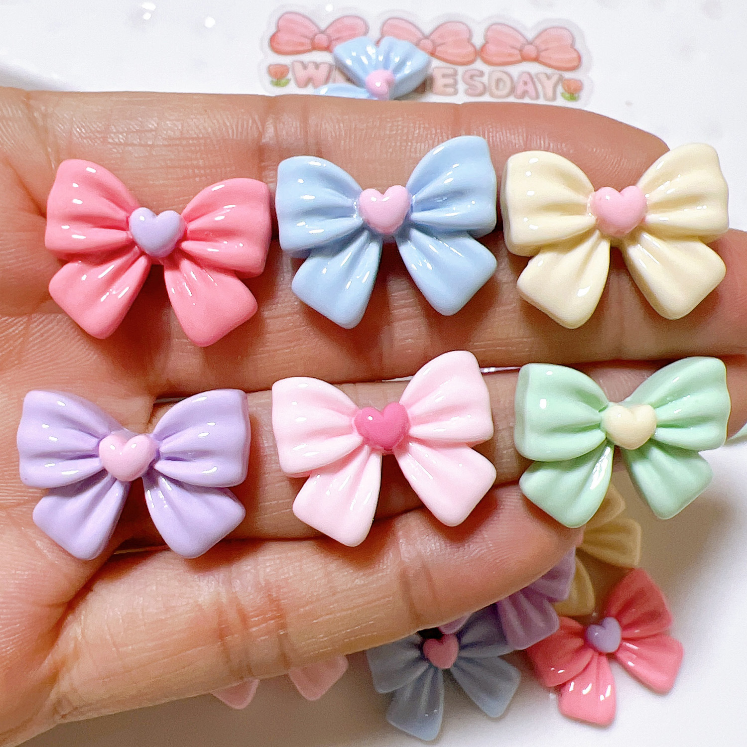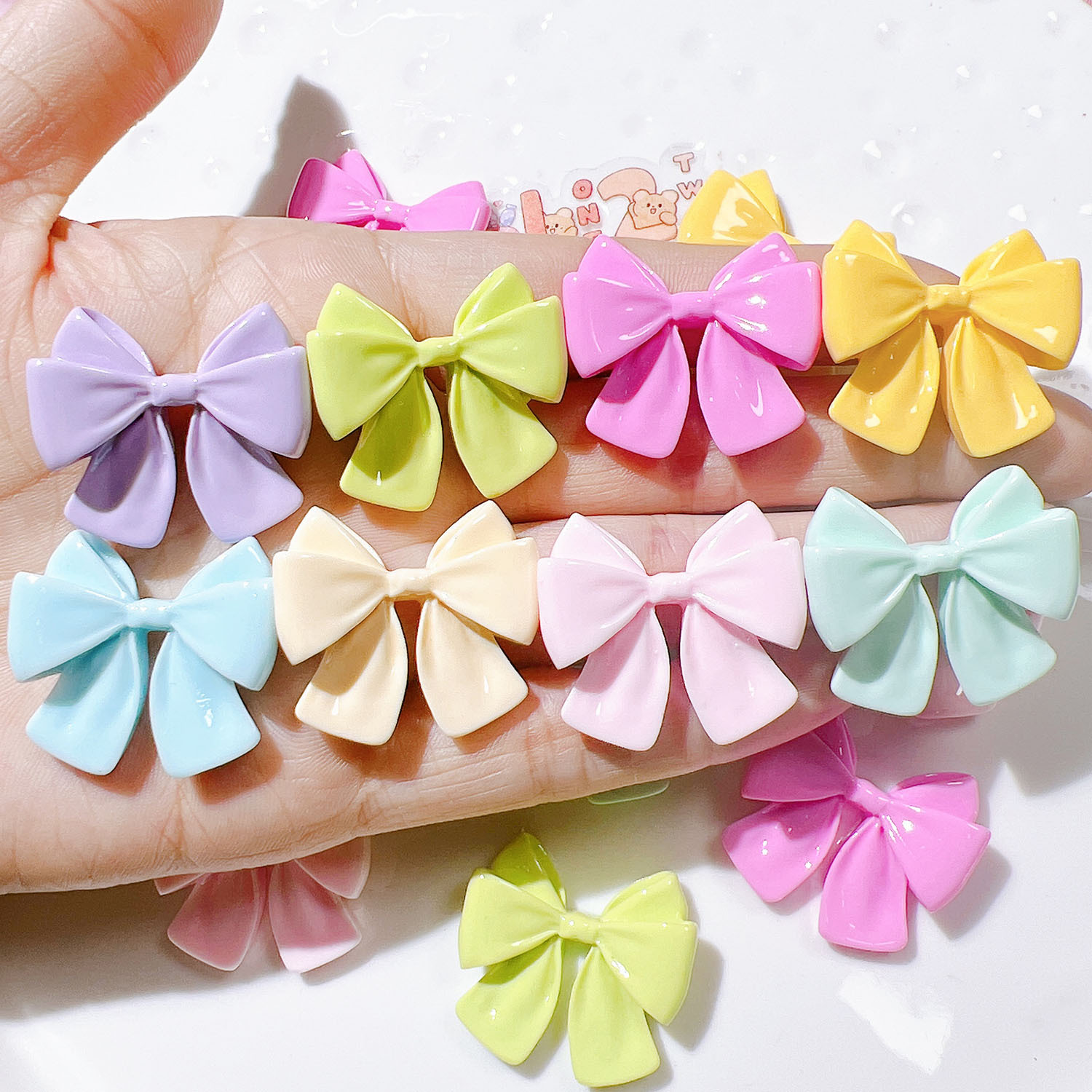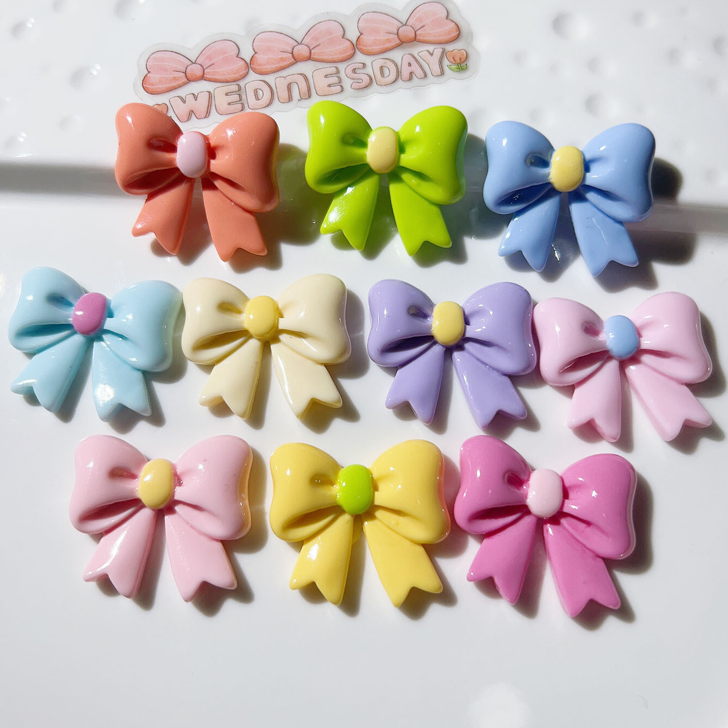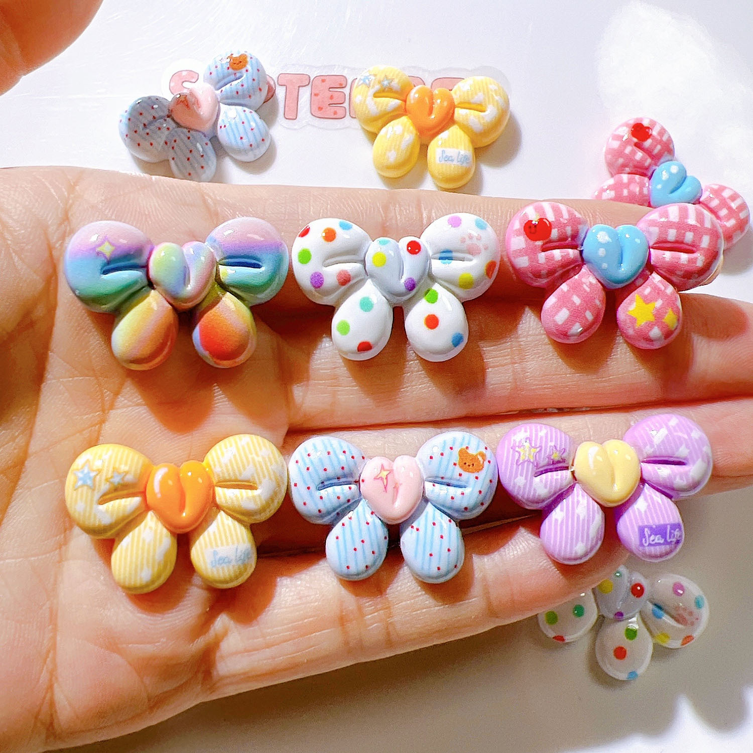 树脂配件批发diy配饰手工材料水杯贴奶油胶儿童发饰七彩蝴蝶结