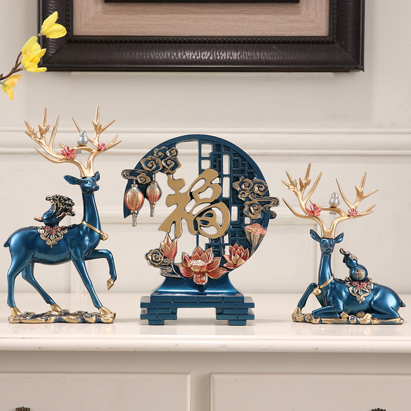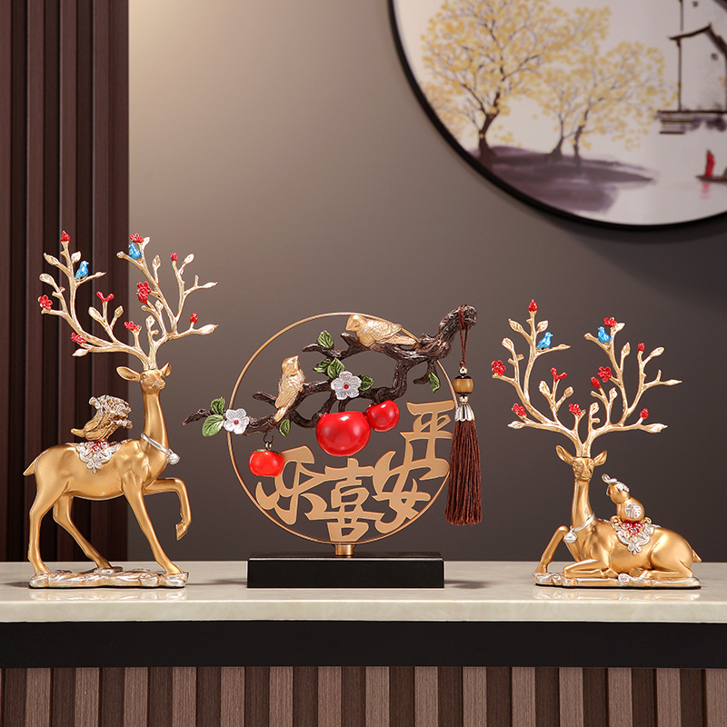 鹿の置物のアイデアは、リビングルームの玄関のテレビキャビネットの装飾品です。