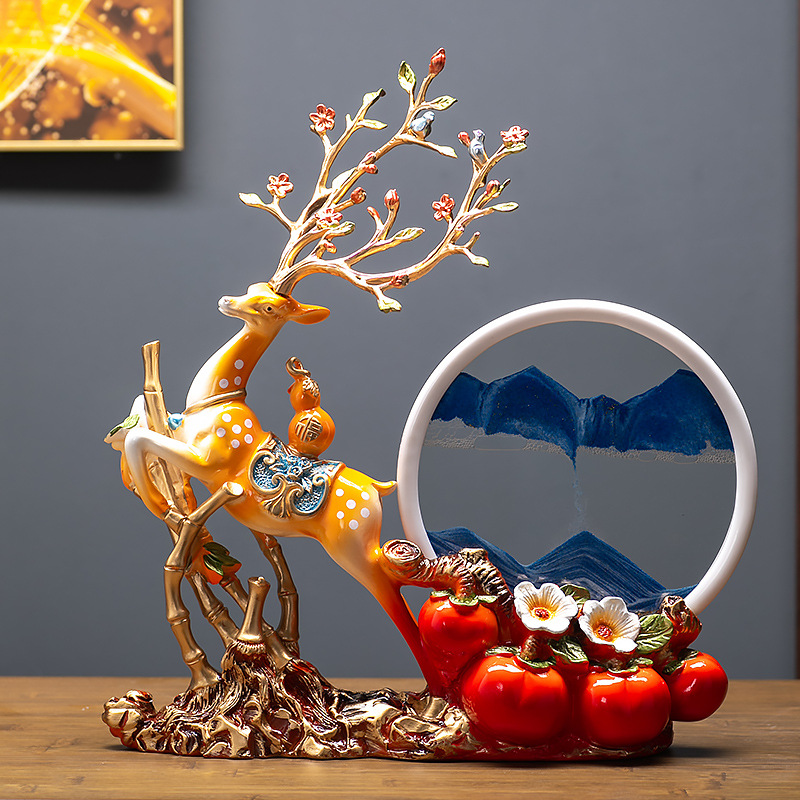 2025年 クリエイティブな招財鹿 流砂絵画 卓上装飾 リビング玄関 テレビ台 酒棚 新築祝いギフト