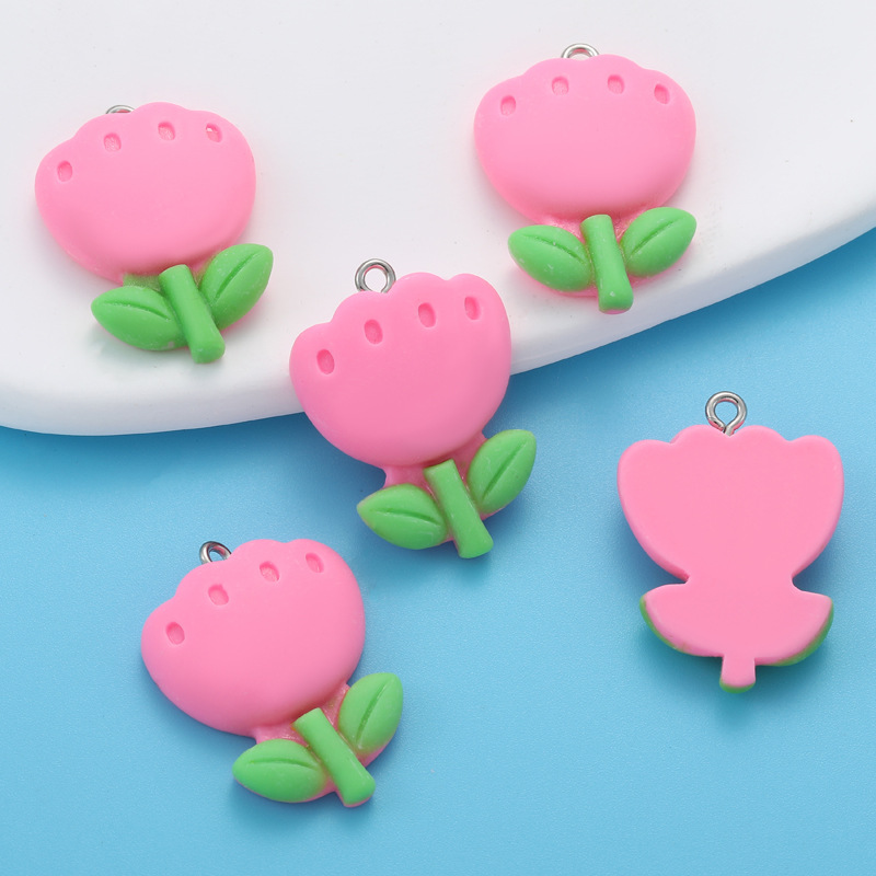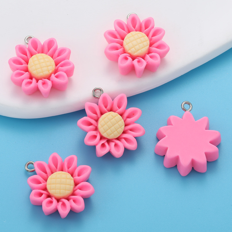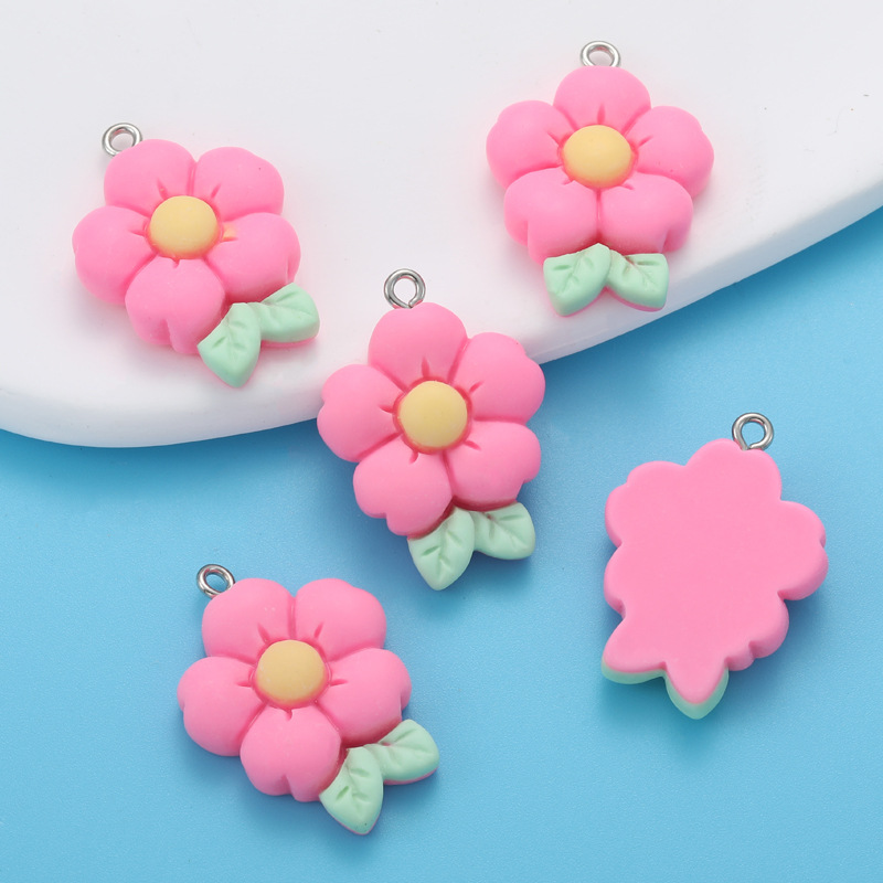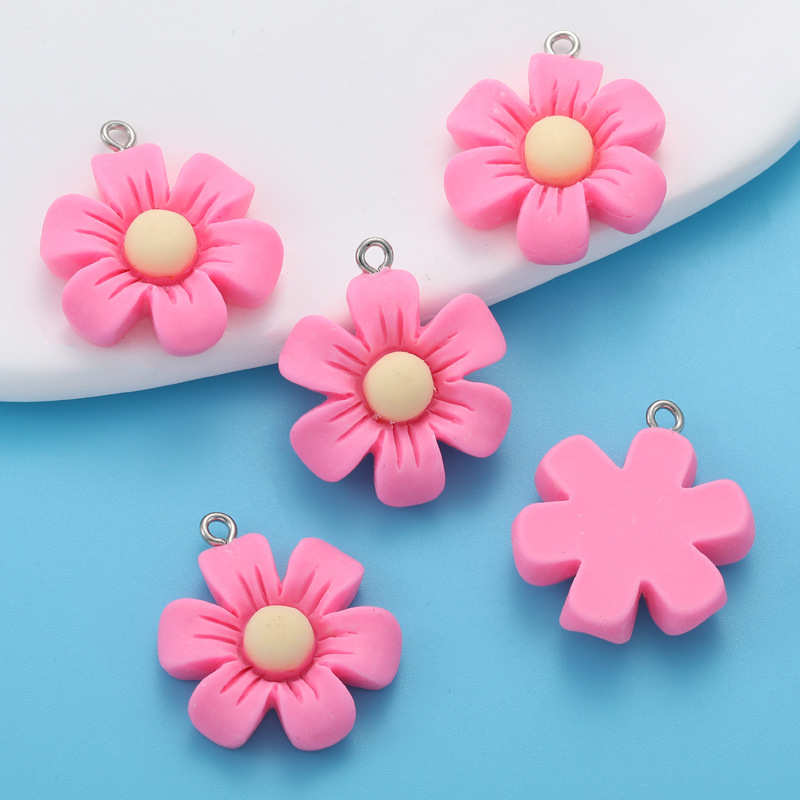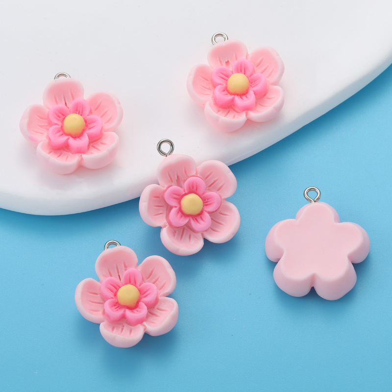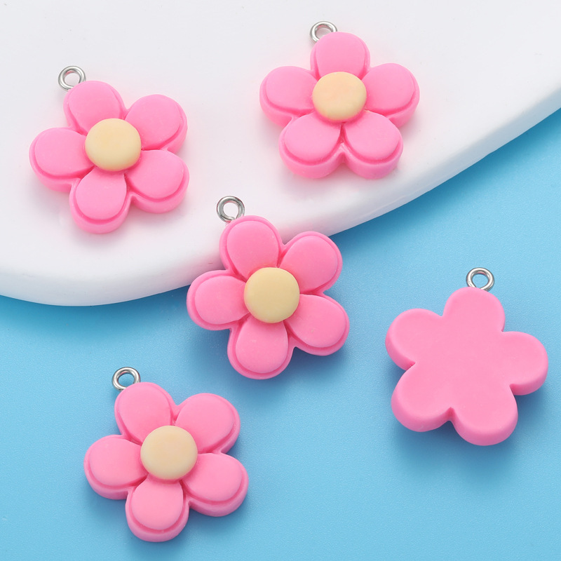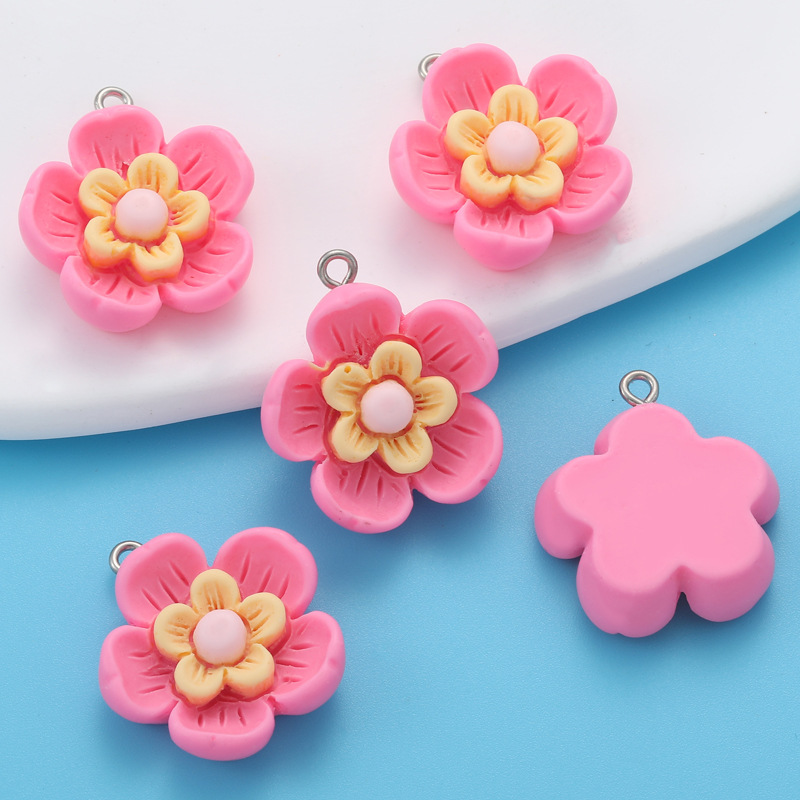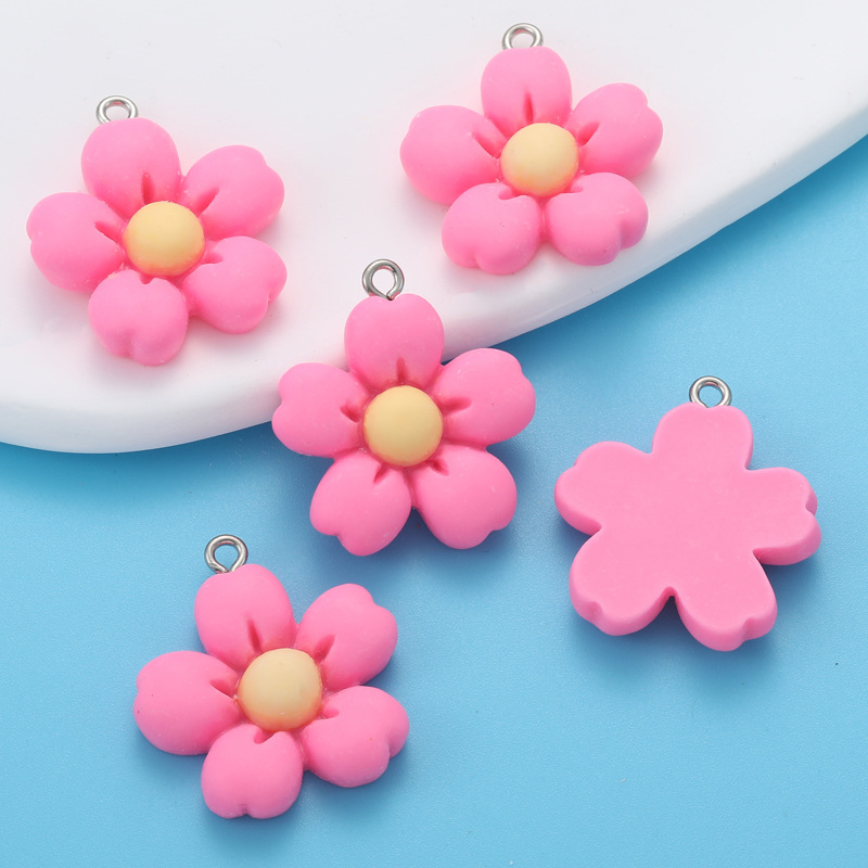 DIY树脂彩色五瓣花花朵吊坠 手链钥匙扣项链装饰挂件W509