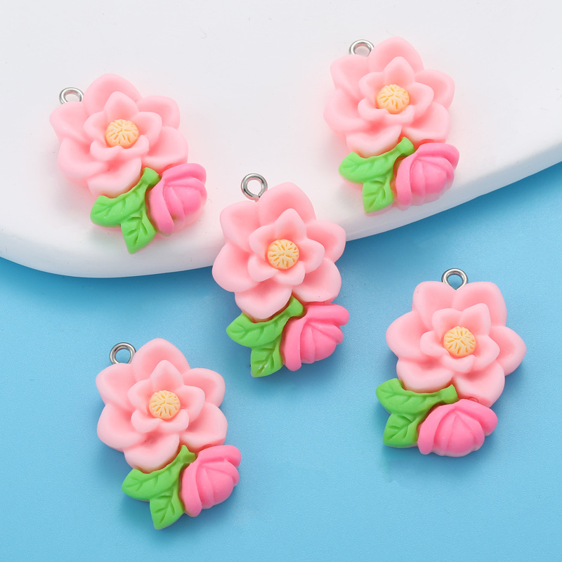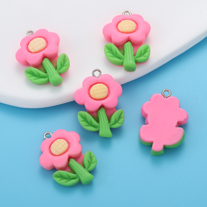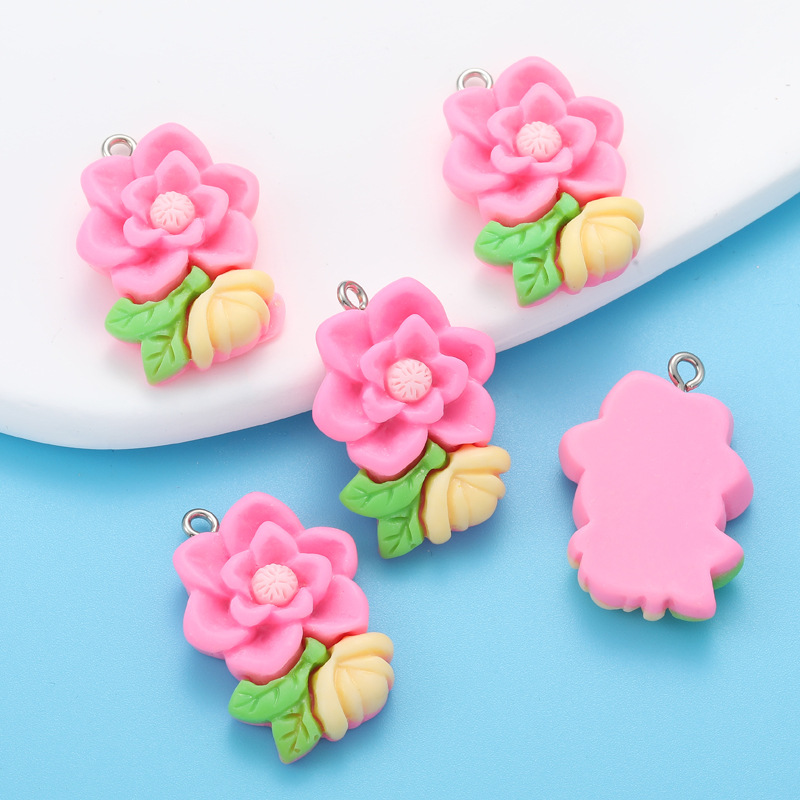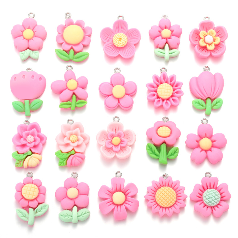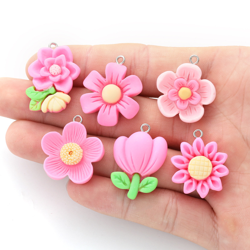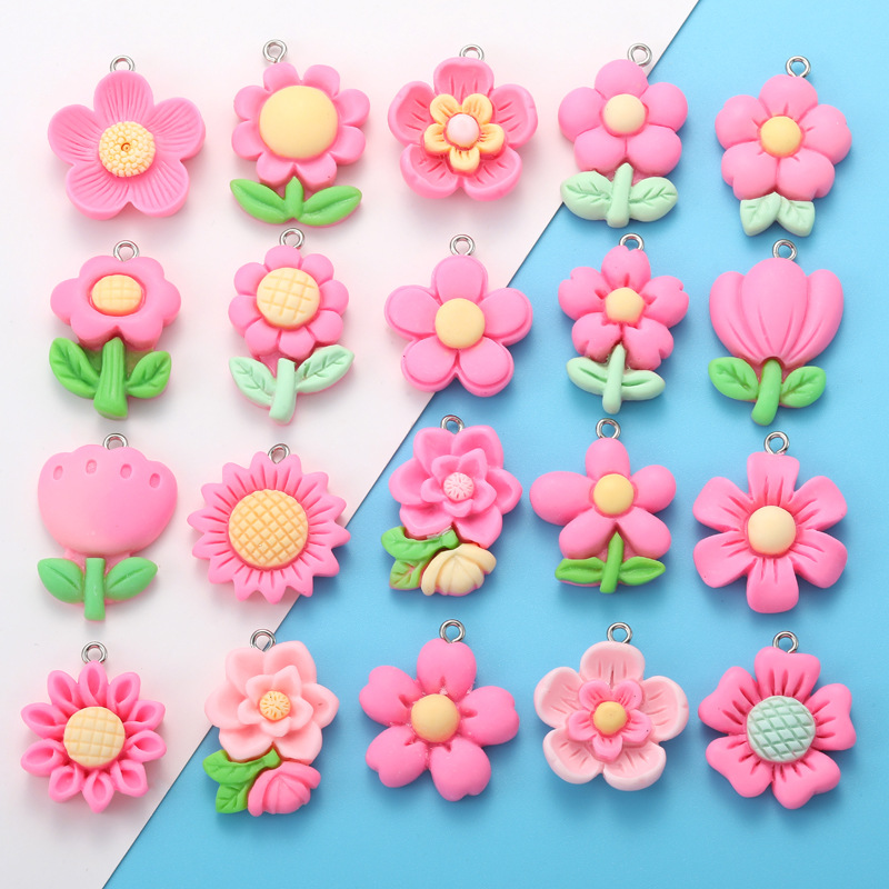 DIY樹脂アクセサリーアクセサリーピンク小花花ストラップキーホルダー飾りペンダントW357