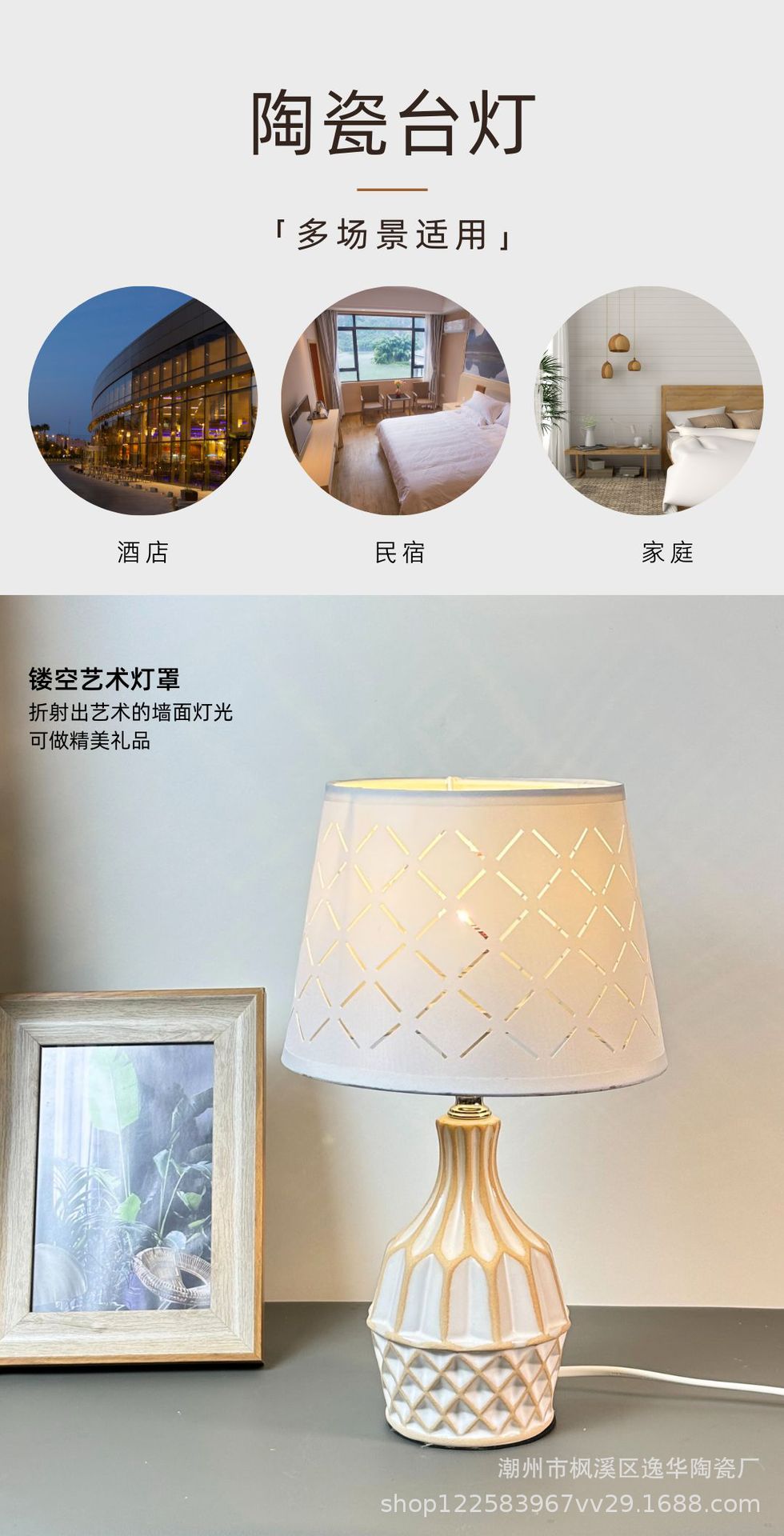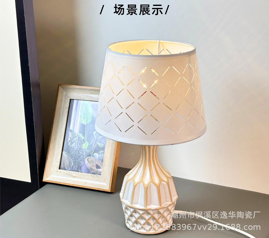 テーブルランプ ベッドサイド 高級感 カットワーク彫刻アートランプシェード 卸売 レトロ装飾照明器具 セラミックテーブルランプ ナイトライト