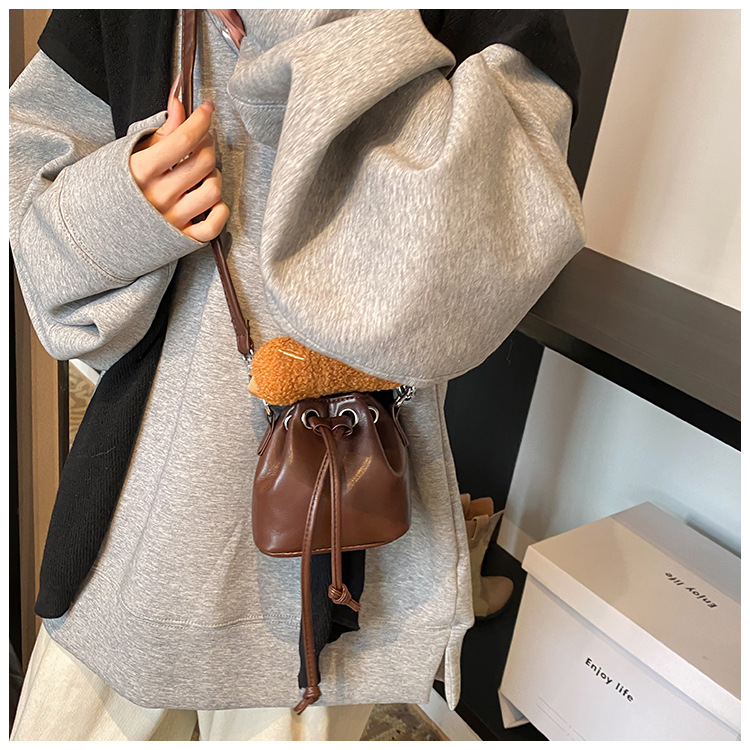 秋冬の超火の小さい包みの女性の2024の新型の流行のレトロな茶色の斜めのショルダーバッグは口のバケツの包みを引き出します。