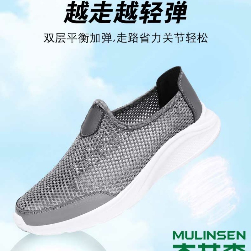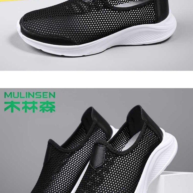 Mulinsen 紳士靴 2025 新しい夏通気性メッシュ薄型トラベルブラックココナッツホットスタイル若者メッシュシューズ
