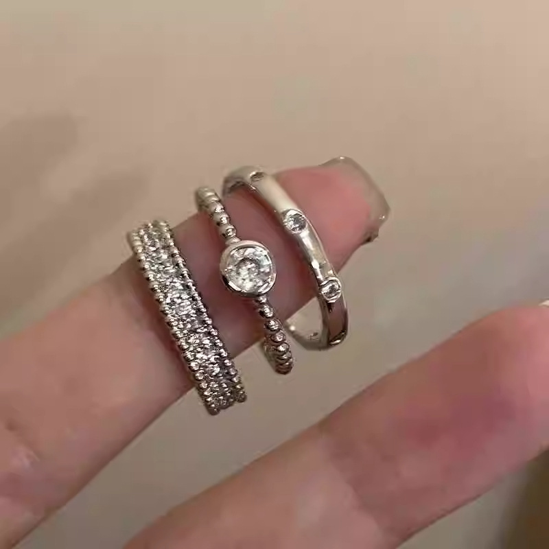 素圈锆石金属开口戒指套装女小众设计高级感食指戒简约冷淡风指环