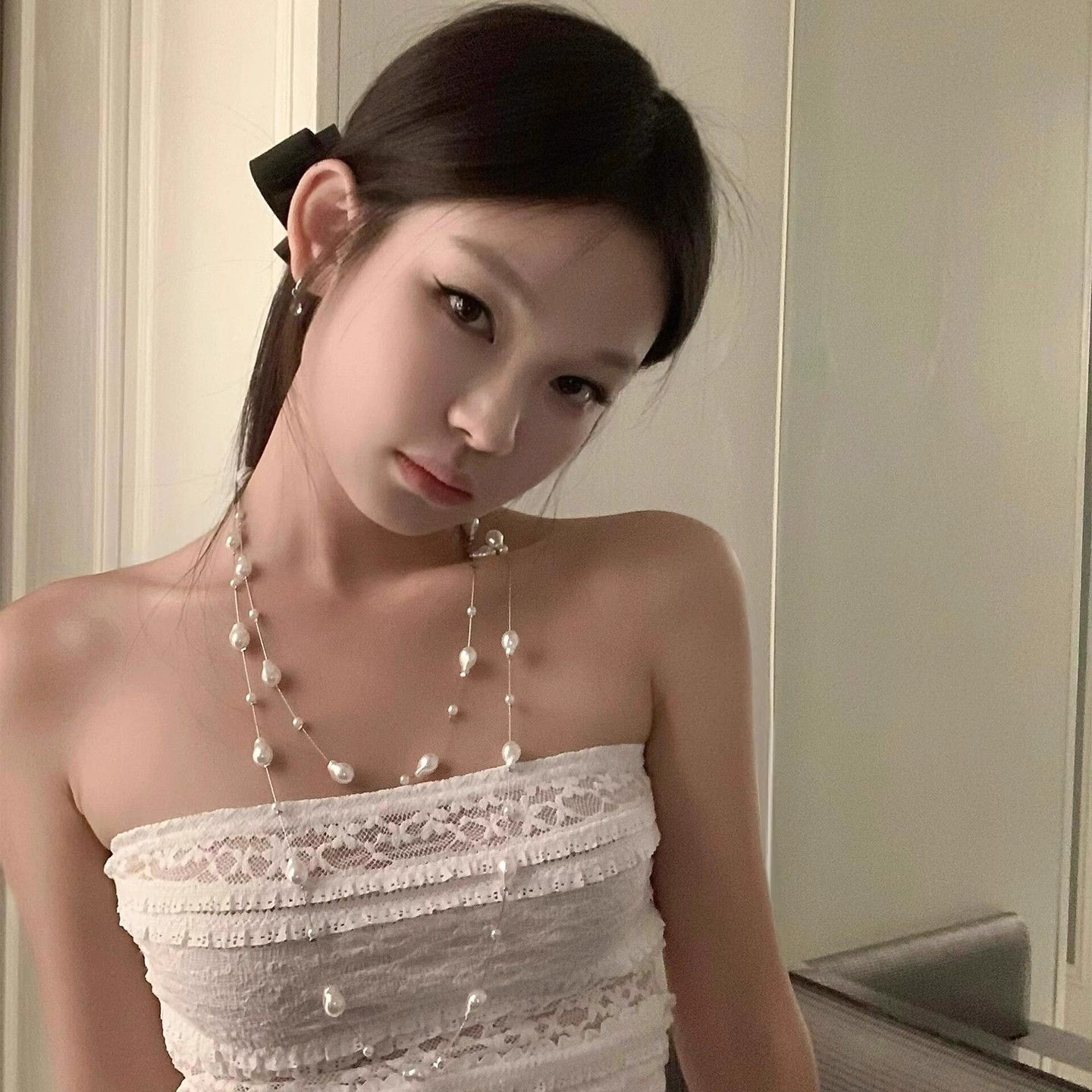 多层珍珠配裙子项链女轻奢小众高级感海边颈链长款叠戴配饰锁骨链