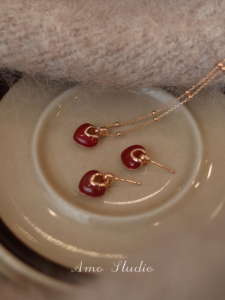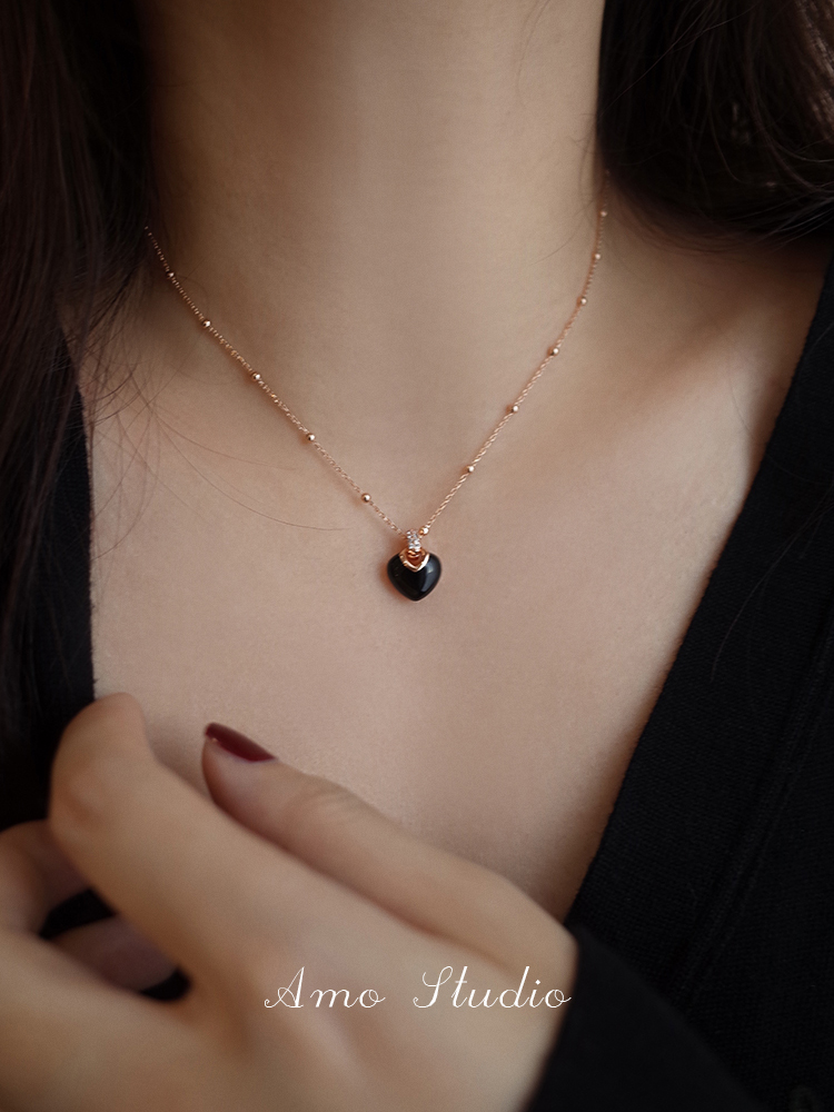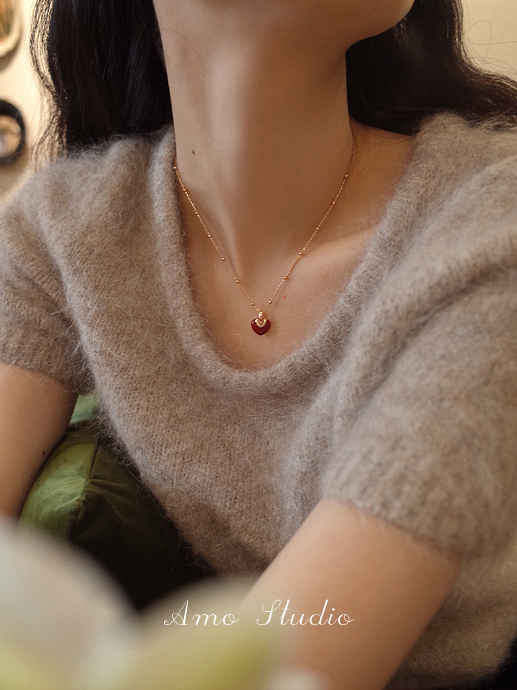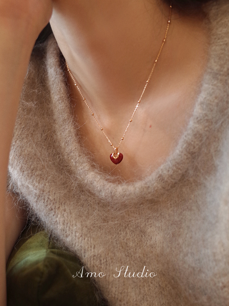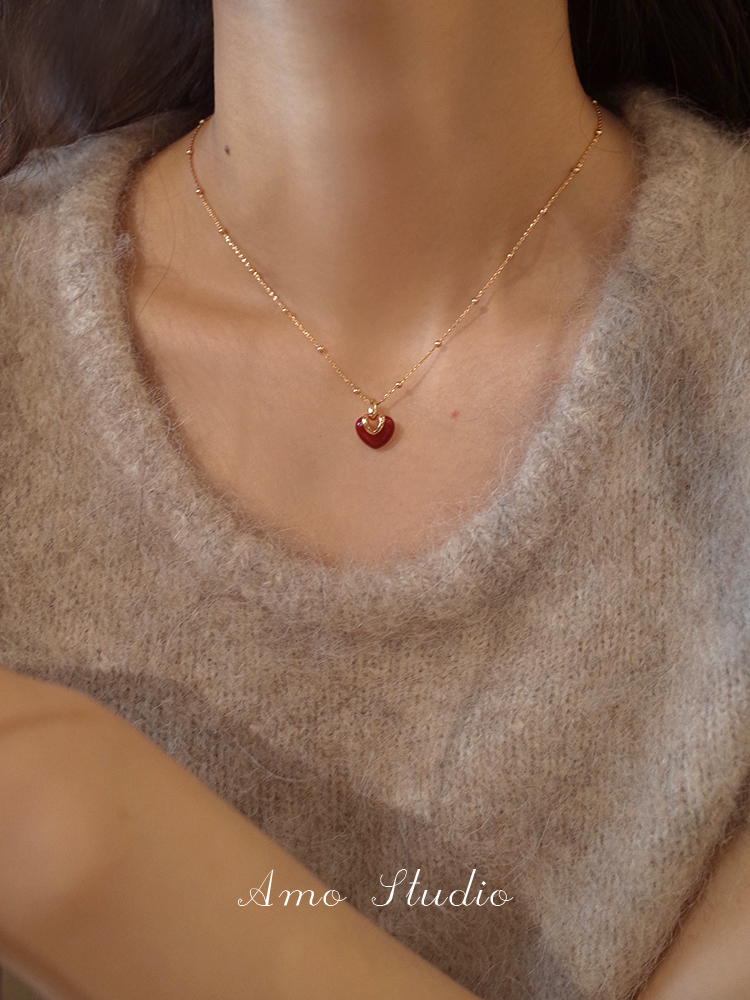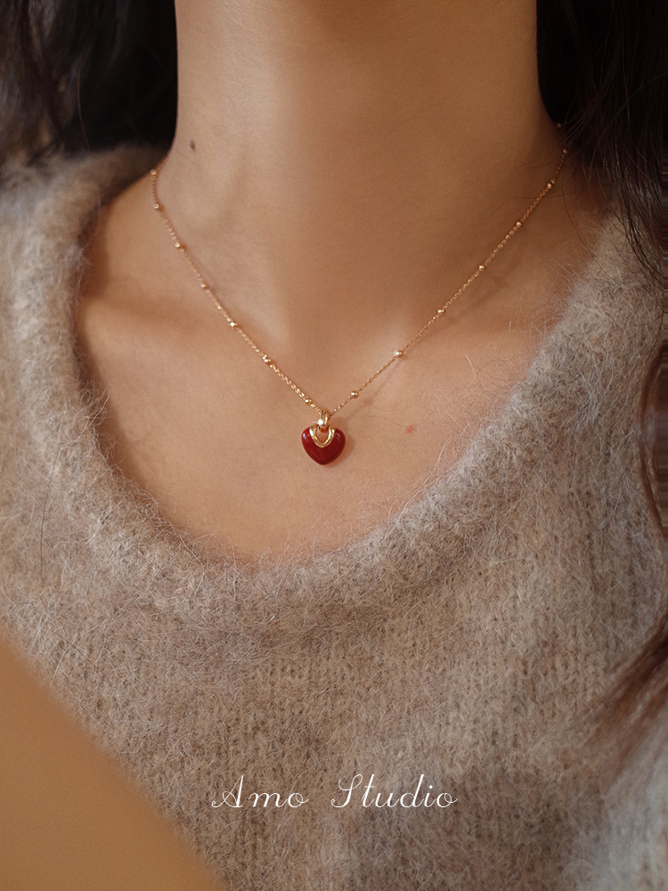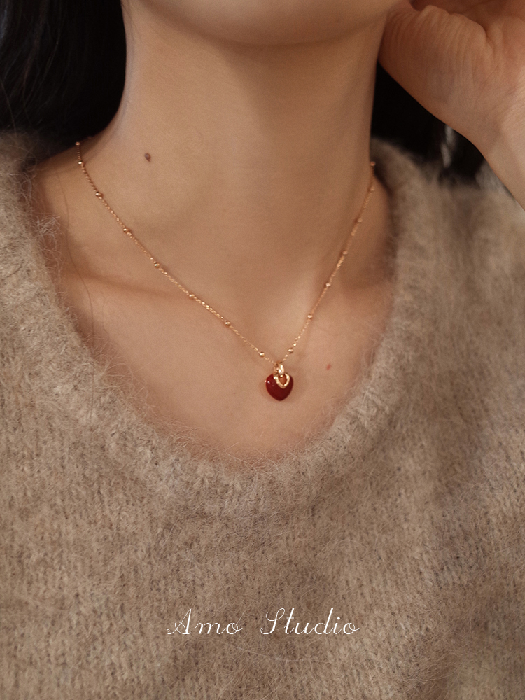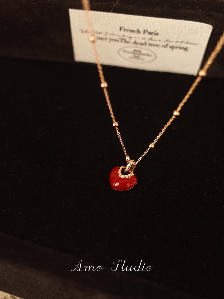 2025 新色エナメルラブネックレス滴る釉薬ハート型鎖骨チェーンライト高級スタイル