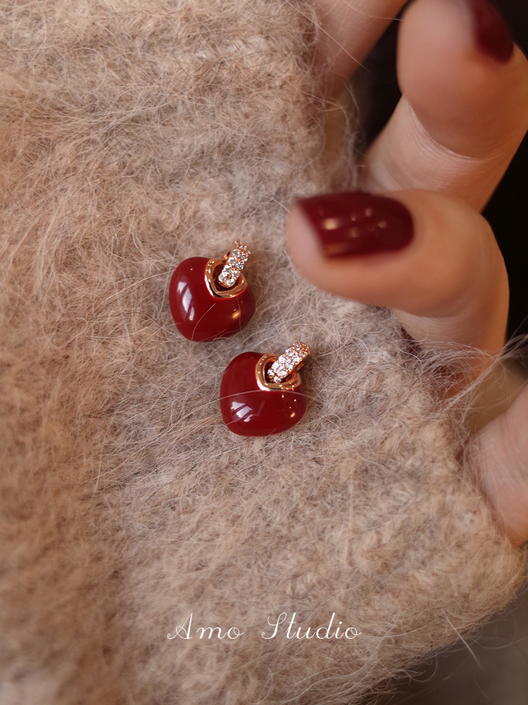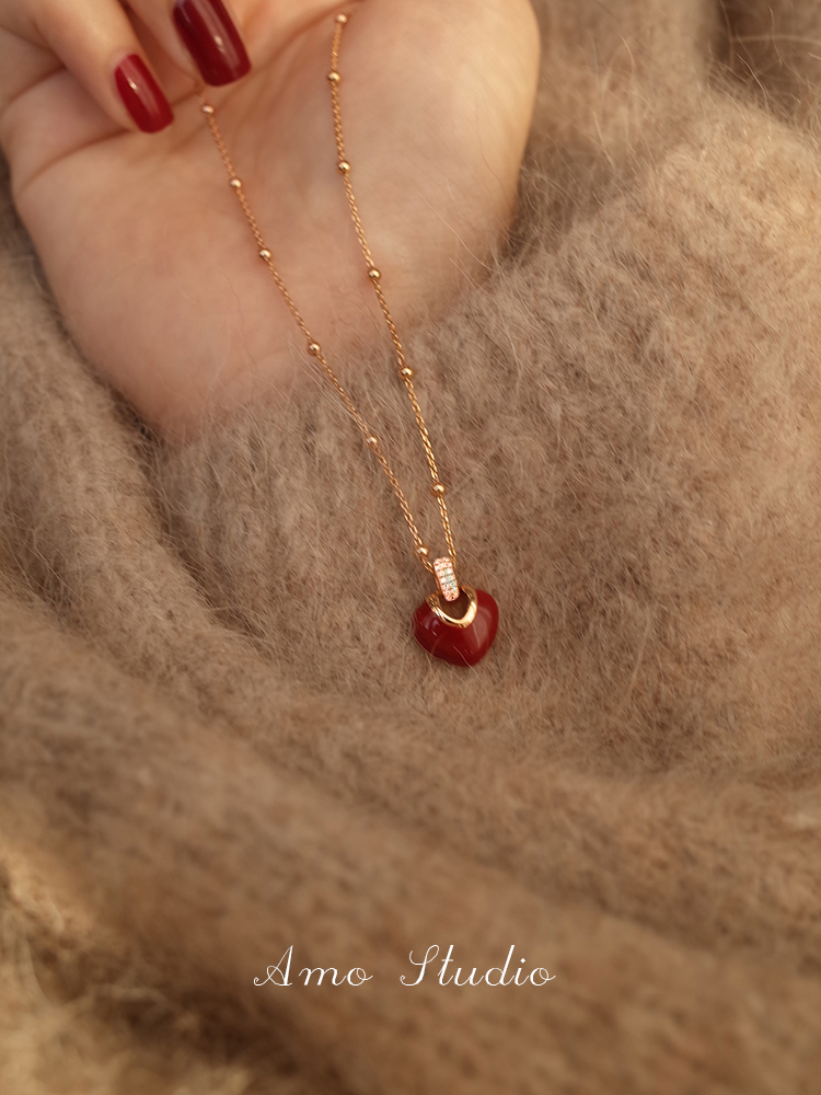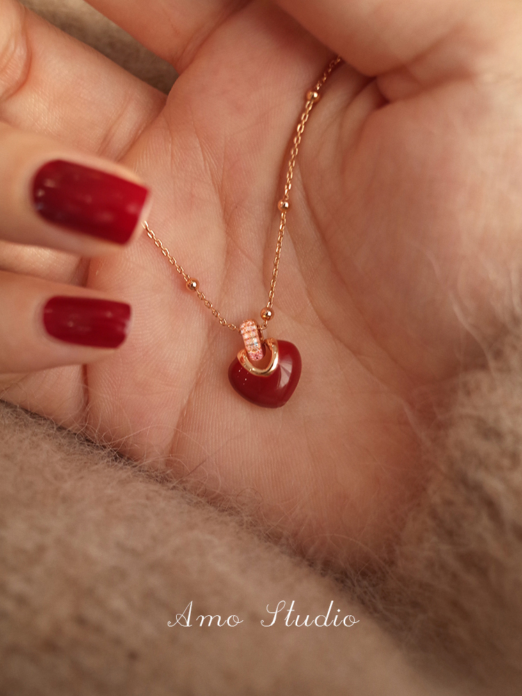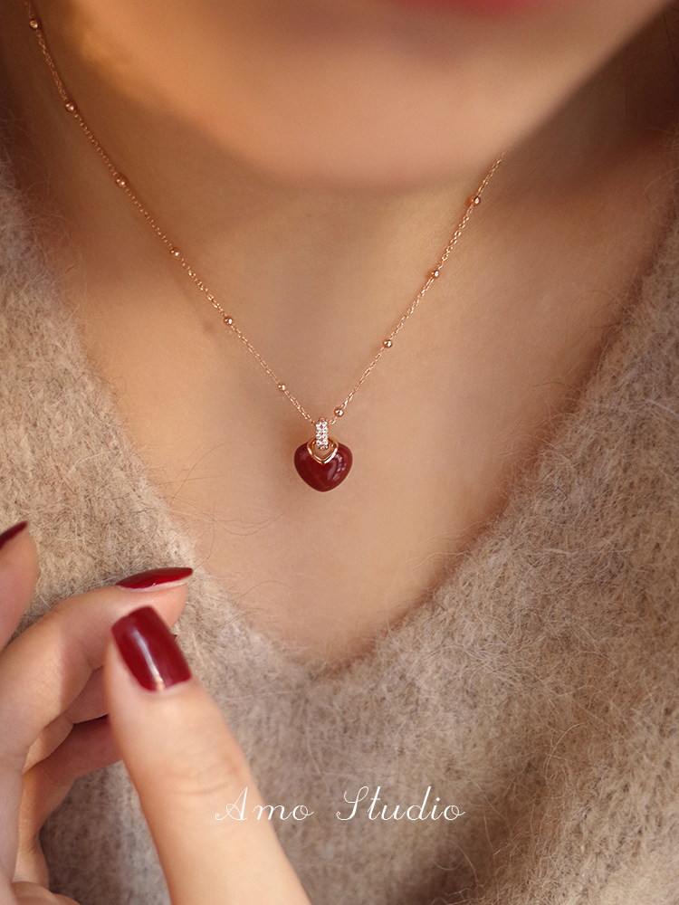光沢のある赤いハートのペンダントネックレス,ダイヤモンドレッドハートペンダントネックレス