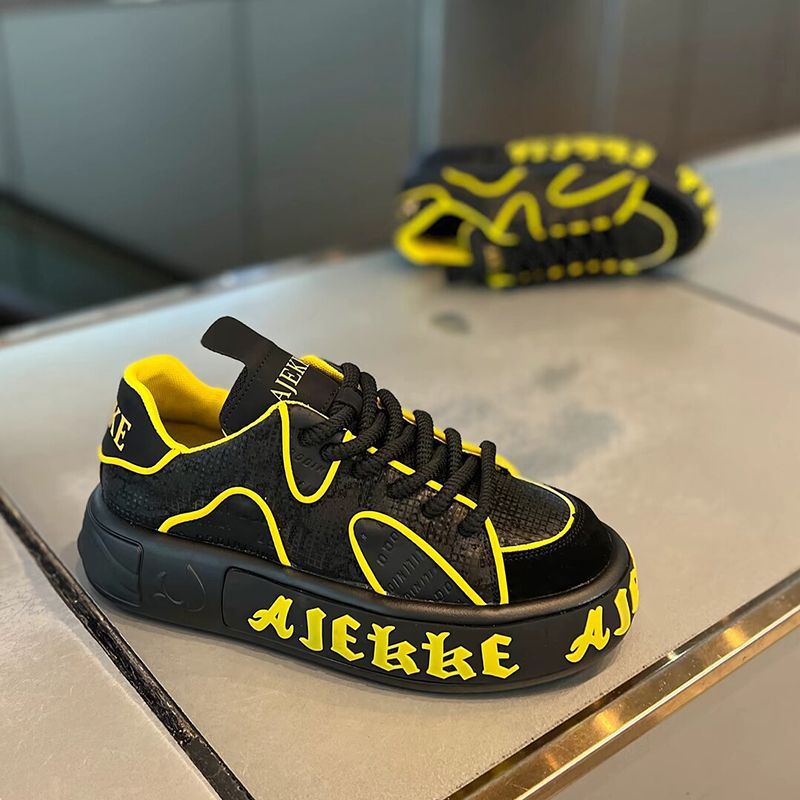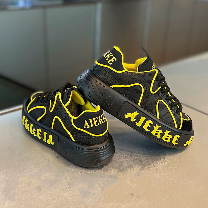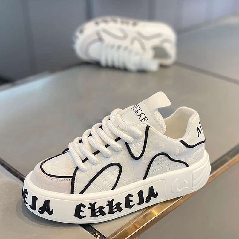 2025年の春の新型男性靴ファッションプリントカジュアルボード靴の厚い底が高くなりました。