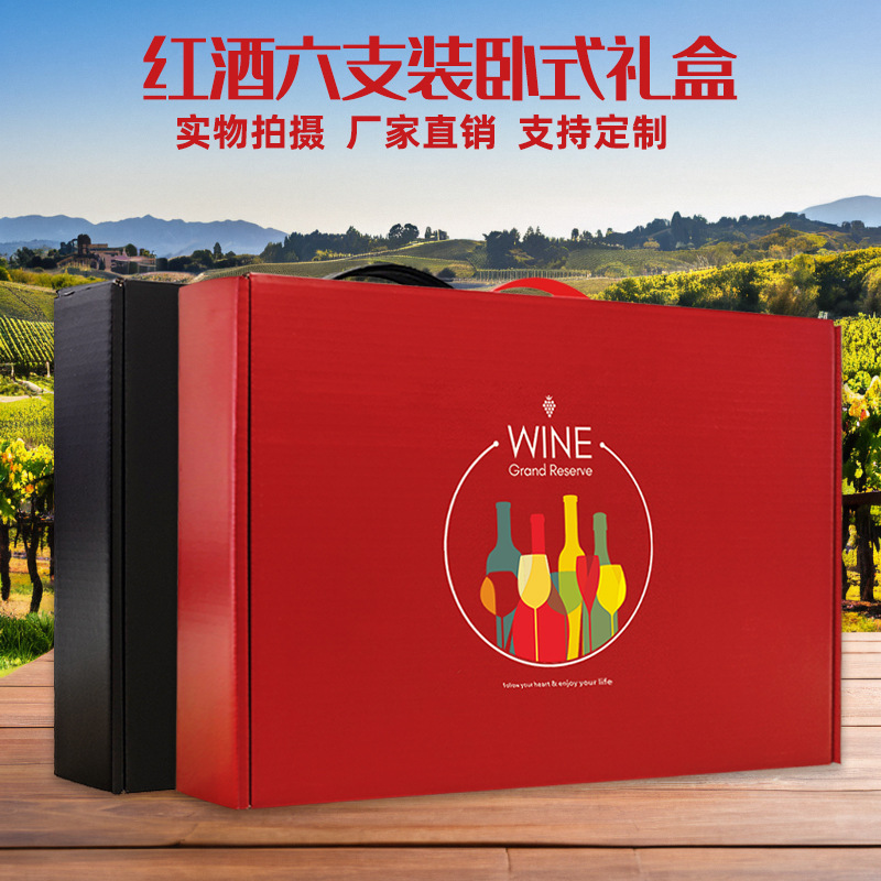 メーカー卸売ハイエンド赤ワイン包装箱 6 パックギフトワインボックス UV 印刷包装ギフトボックス赤ワインギフトボックス
