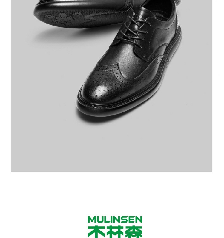 木林森男靴夏英倫風ビジネス正装カジュアル革靴男性本革ブロック結婚新郎靴