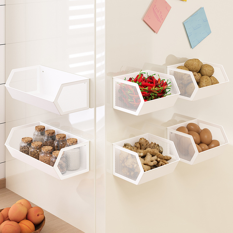 キッチン用マグネット式冷蔵庫収納ラック収納ケース玉葱姜にんにくかけバスケット穴なし側収納側面外側調味料