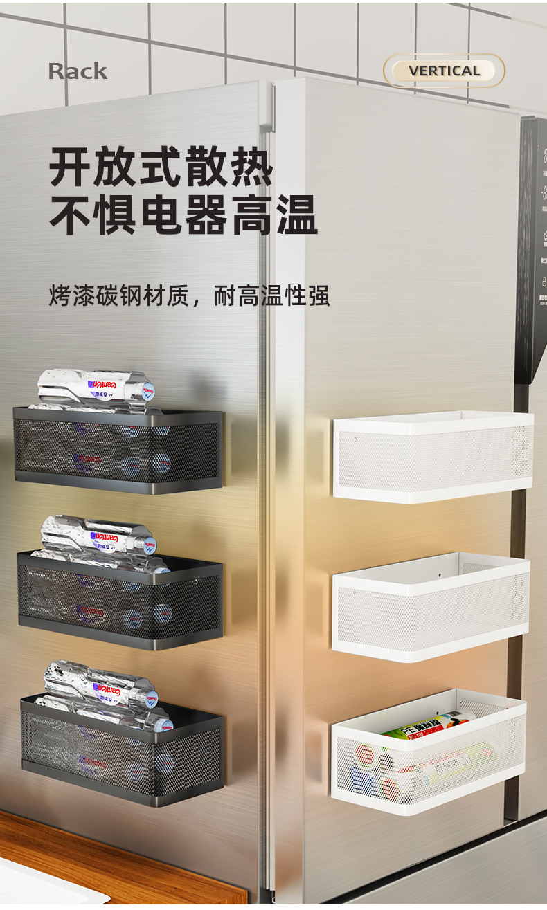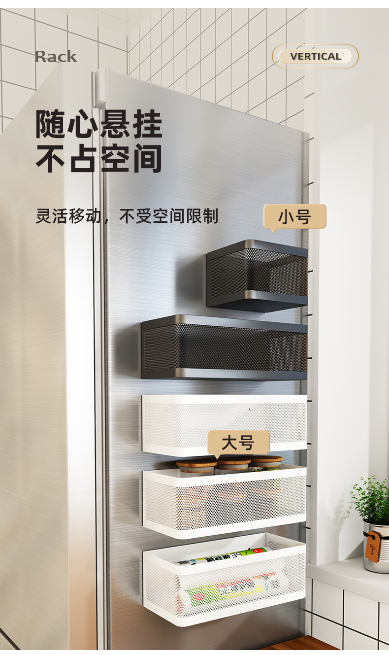 キッチン冷蔵庫側収納マグネット棚側面神器穴板隙間磁石バスケット調味料ネギにんにく