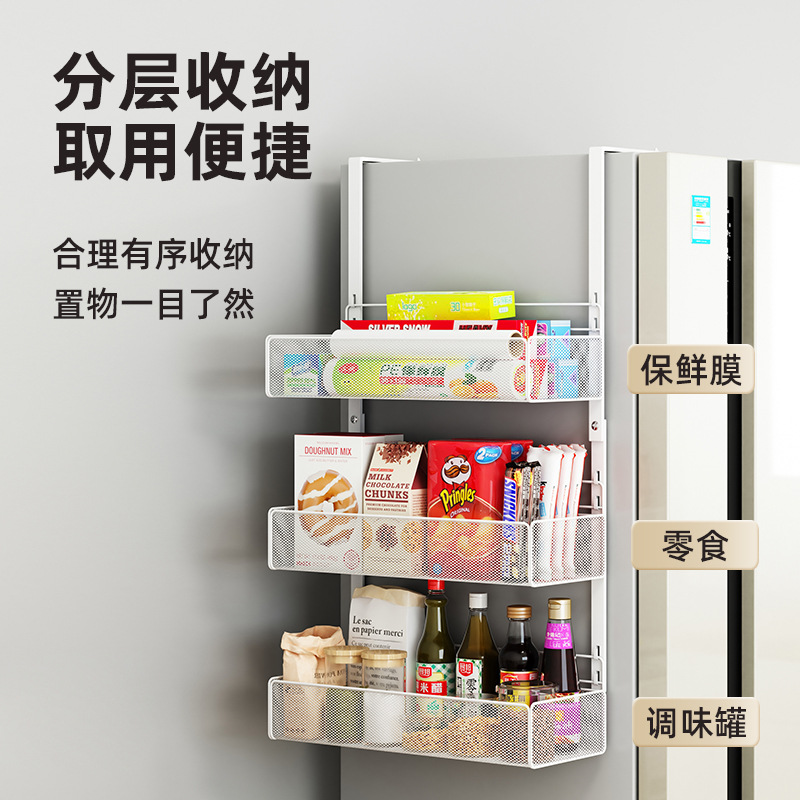 冷蔵庫ラックサイド収納外側壁サイドラックキッチン各種神器バスケットフックラップ調味料ラック