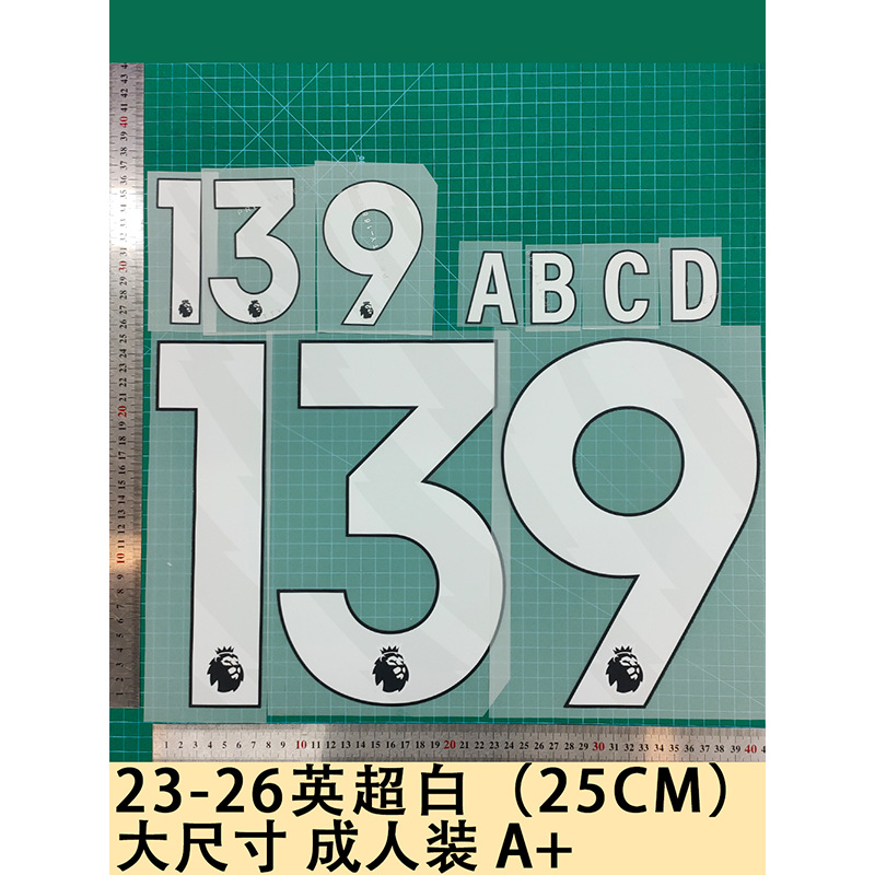 23-24プレミアリーグ(25cm)白A+ジャージ番号レターホットプレスナンバーホット転写ステッカー サッカーユニフォーム
