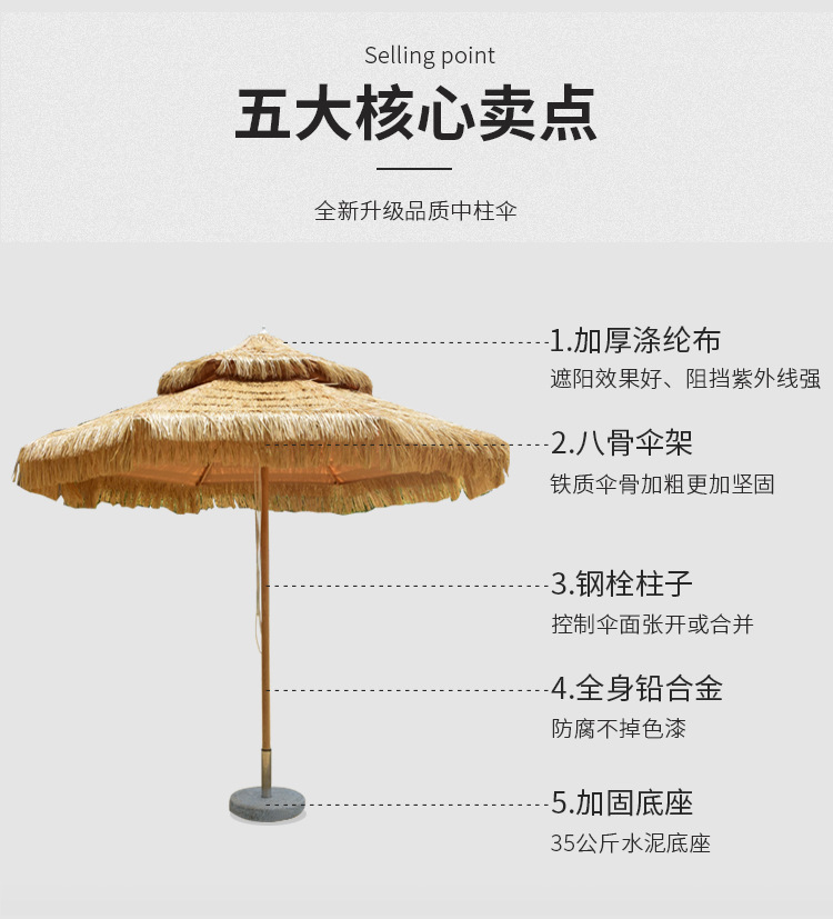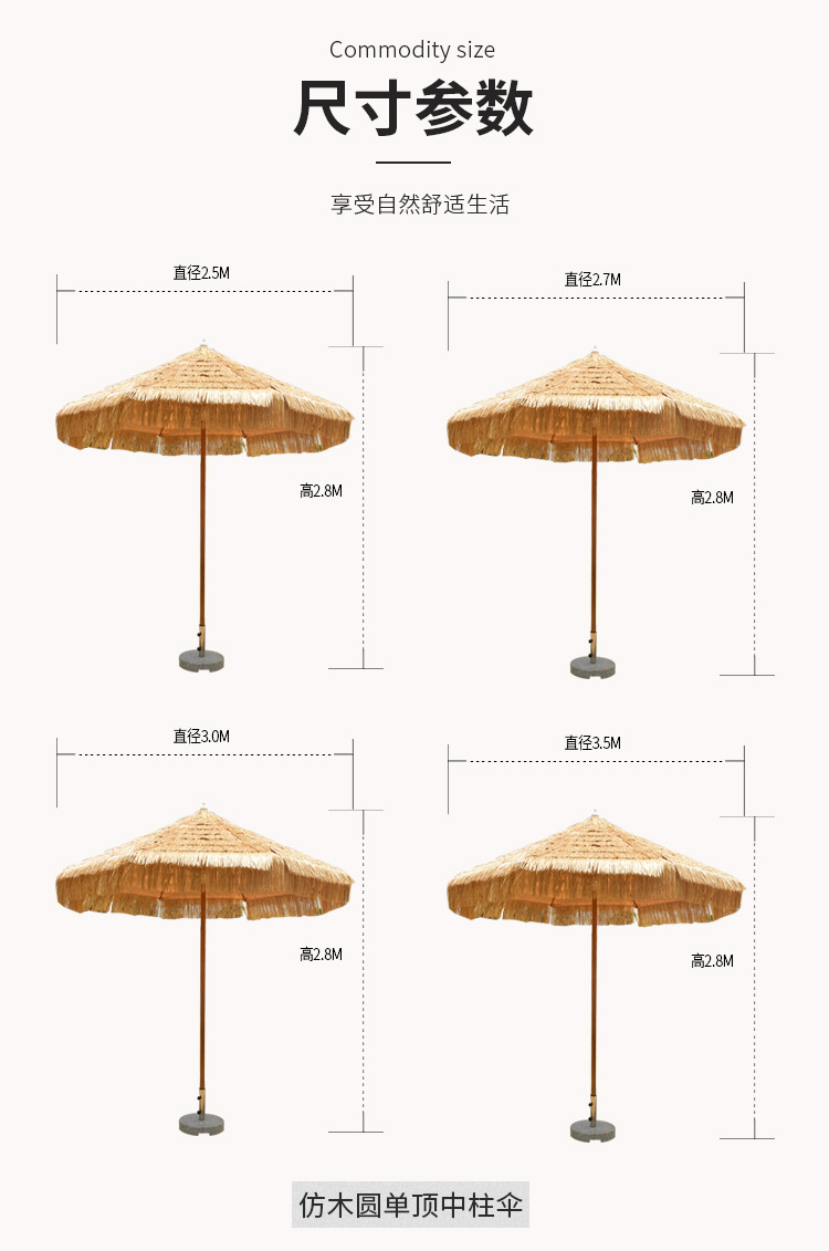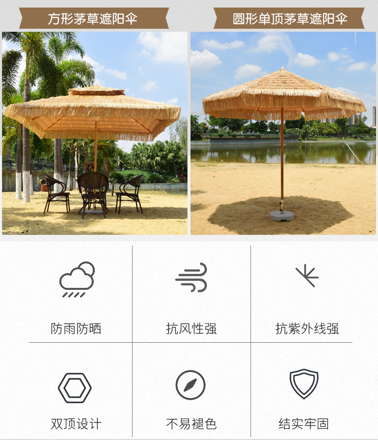 屋外茅草棚屋外庭園日除け傘稲わら日除けテントビーチ傘別荘ガーデンバルコニー柱傘