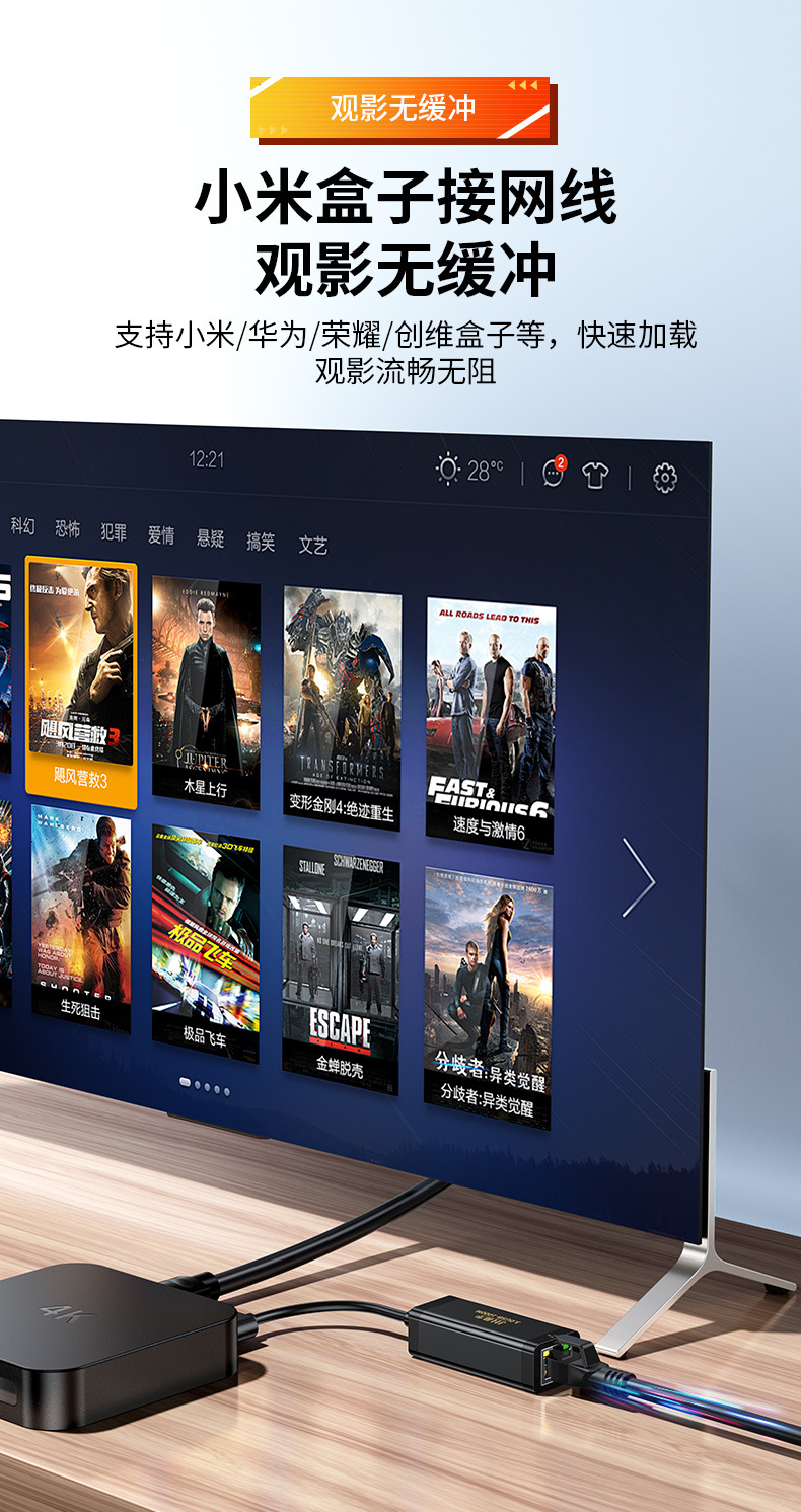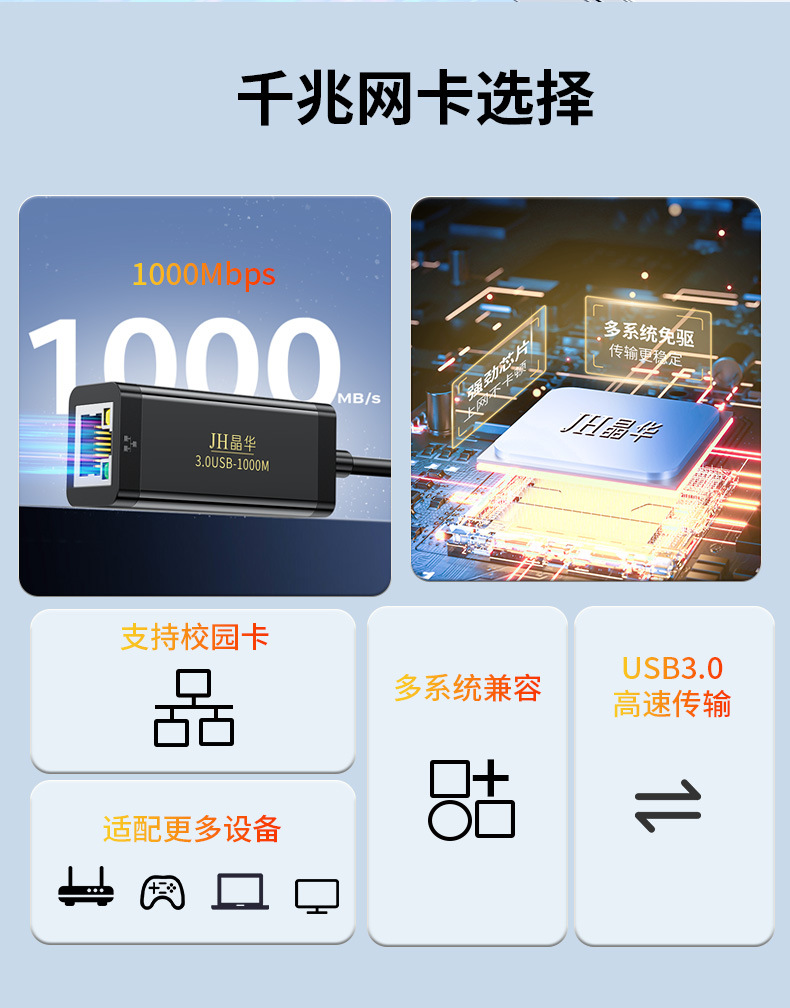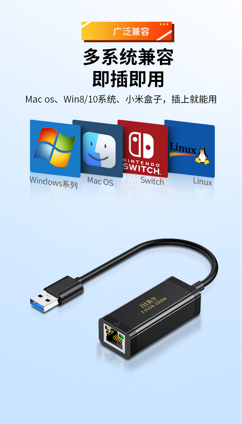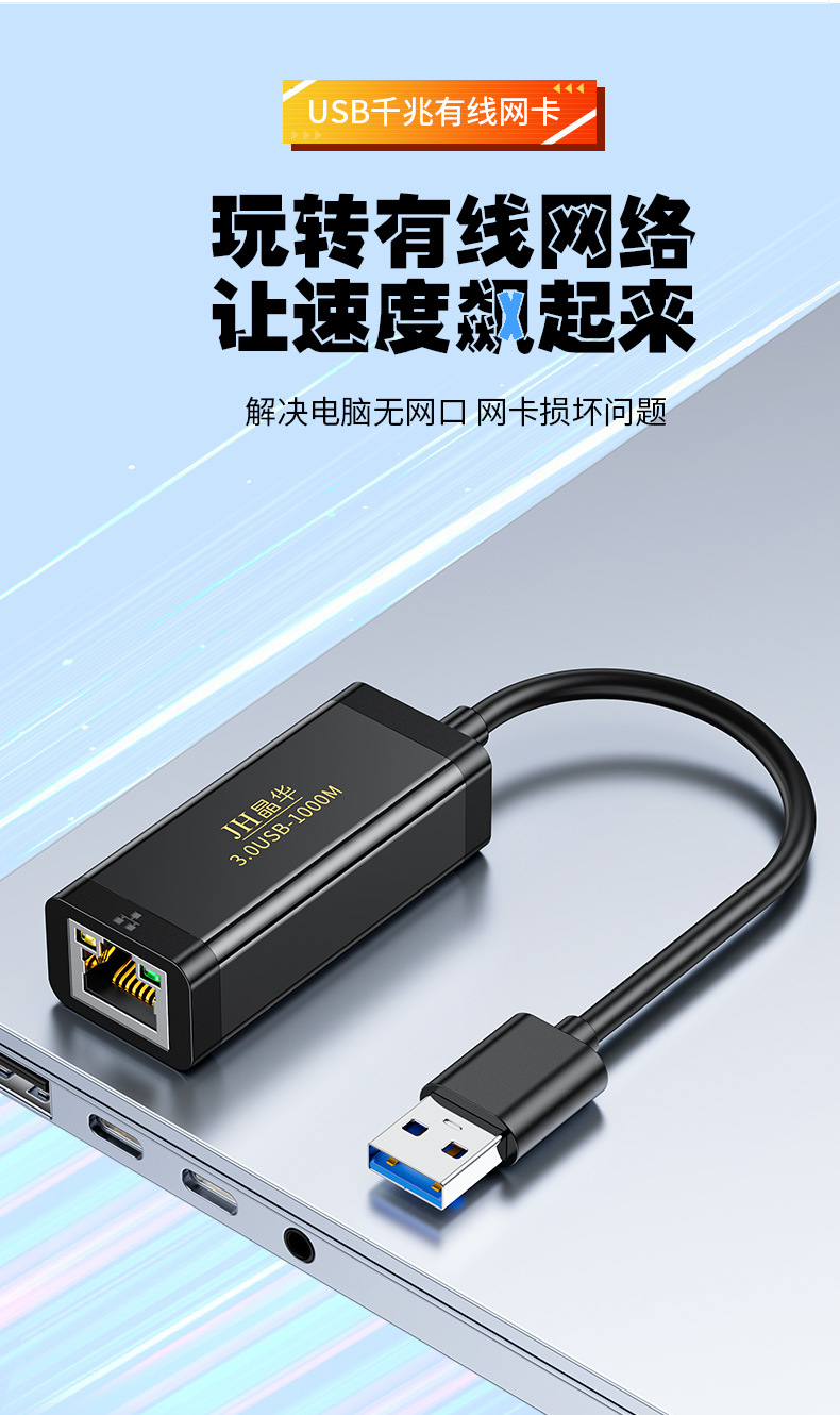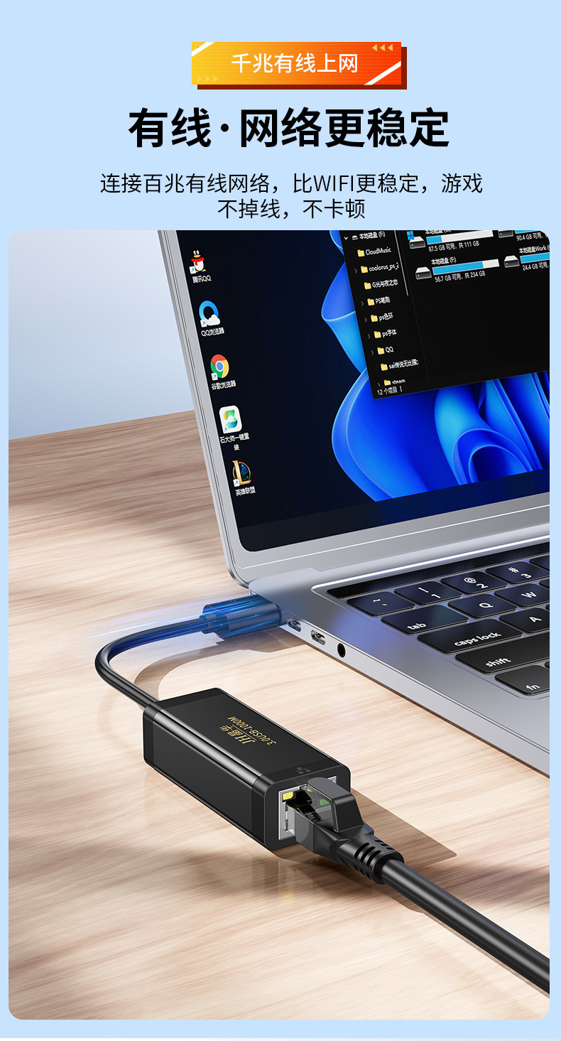 千兆网卡usb转网口电脑百兆有线网卡网线转换器四合一typec网卡