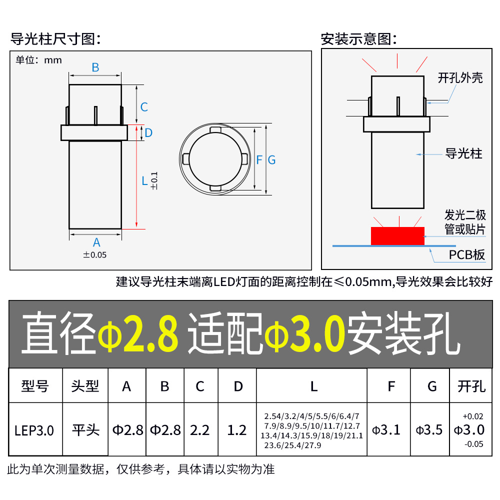 LED贴片灯透明导光柱LDT3.0mm孔径带卡痕圆头增亮聚光柱PC透光柱
