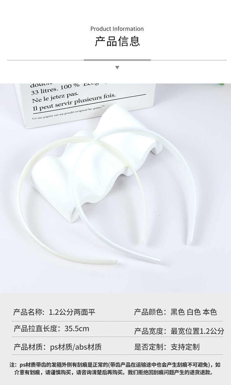 白カチューシャレディース卸売布ツイストカチューシャDIYカチューシャ2.0両面フラット39cm