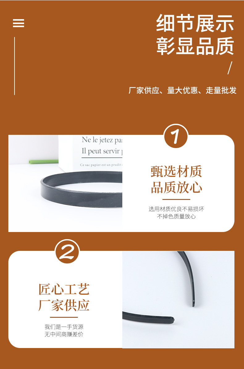 メーカー卸売り黒半製品光板頭ボタンブランク歯なし細いカチューシャ1.2両面平35 cm