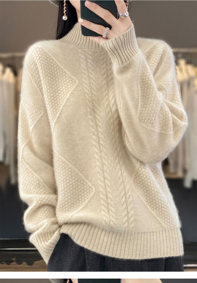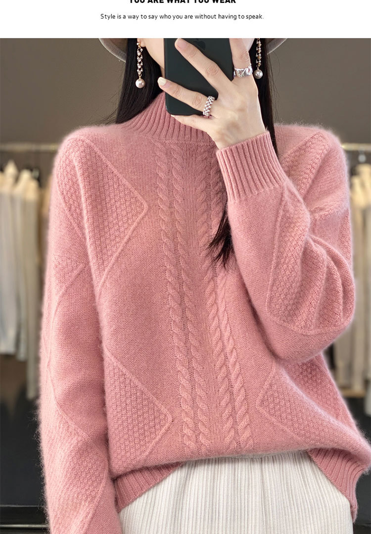 鄂尔多斯市半高领针织衫加厚毛衣2025新款打底羊毛衫