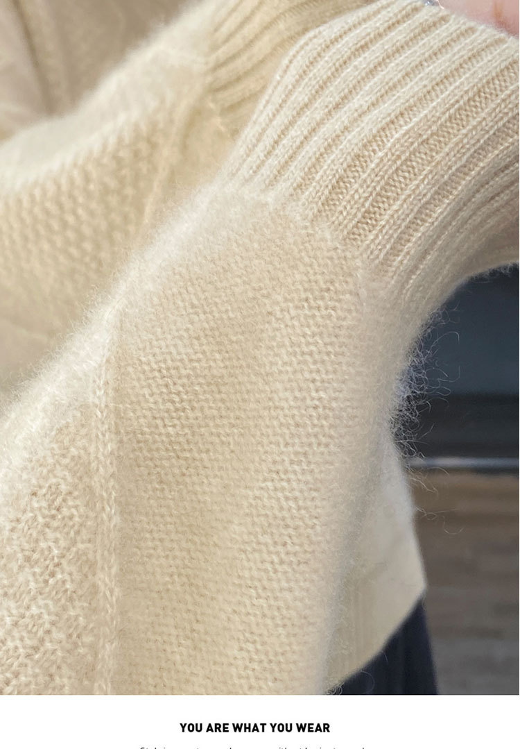 【メーカー直供】ファッション高襟ニットシャツ秋冬新作純色百合ゆるい女性セーターブーム