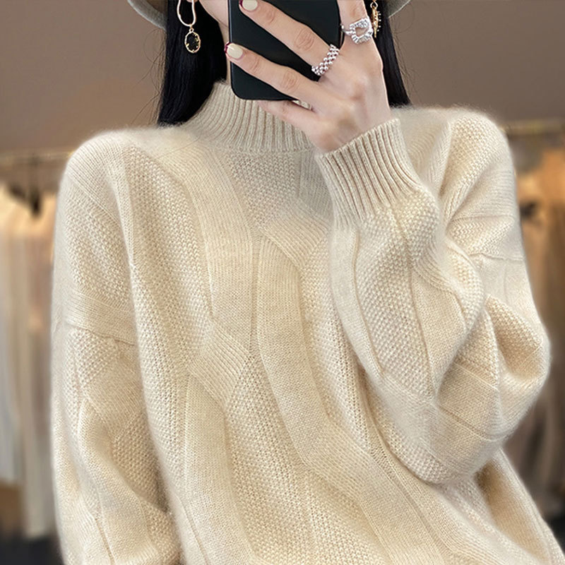 【メーカー直供】秋冬新作半高襟厚手セーター女性純色ゆったりジャカードニット底シャツ