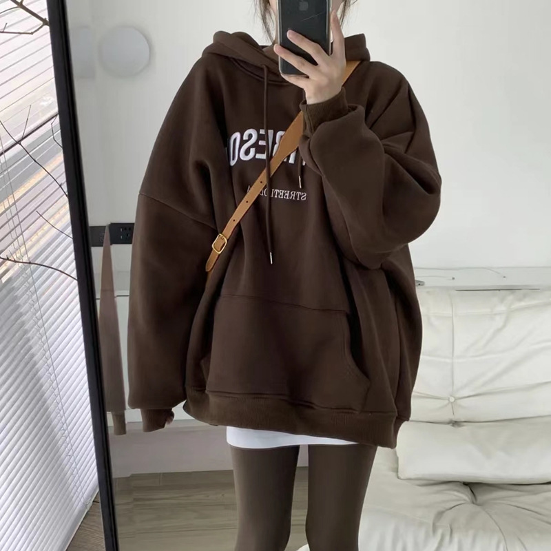 美ラードコーヒー茶色アメリカレトロなガーディアン女性秋冬2024新ベルベットフード付きオーバーサイズ