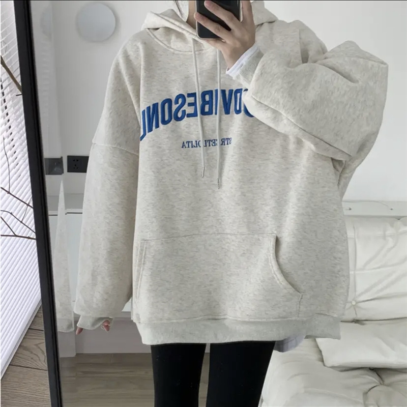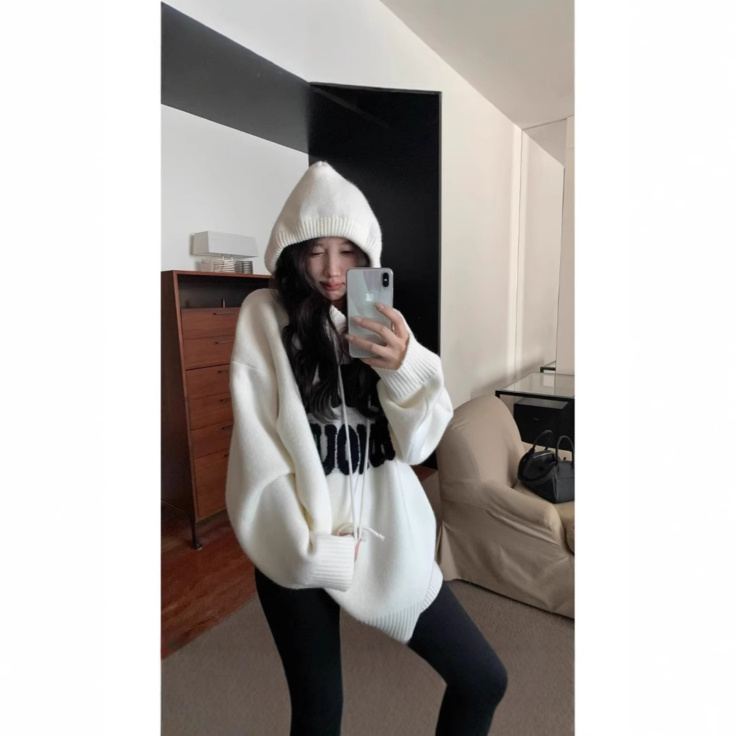 アルファベットの灰色の帽子のゆったりしたセーターの女性秋冬の新型のレトロなニットの怠惰な頭の長袖の上着のコート