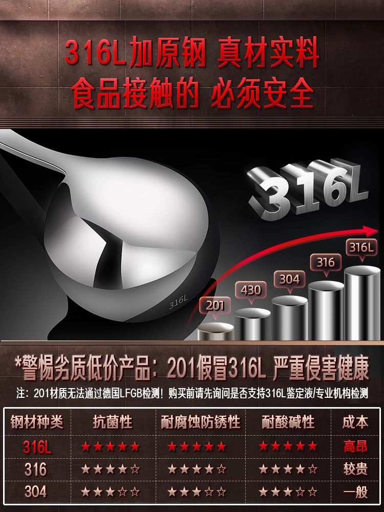 三四鋼ステンレス316食品級スープスプーン家庭用大盛スープ鍋漏れスプーン長柄深みスプーン