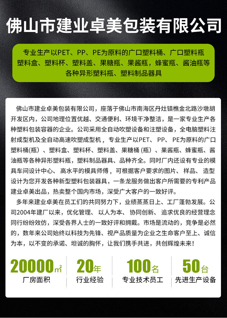 建業卓美1L大容量増厚金研磨瓶1000ml食品液体固体分注広口瓶