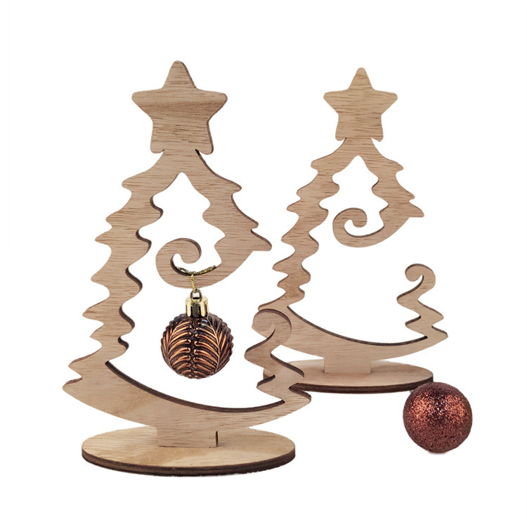 国境を越えたアマゾンの新年のクリスマスの小さな木の装飾金の木製クリスマスツリーのボールの装飾品の置物