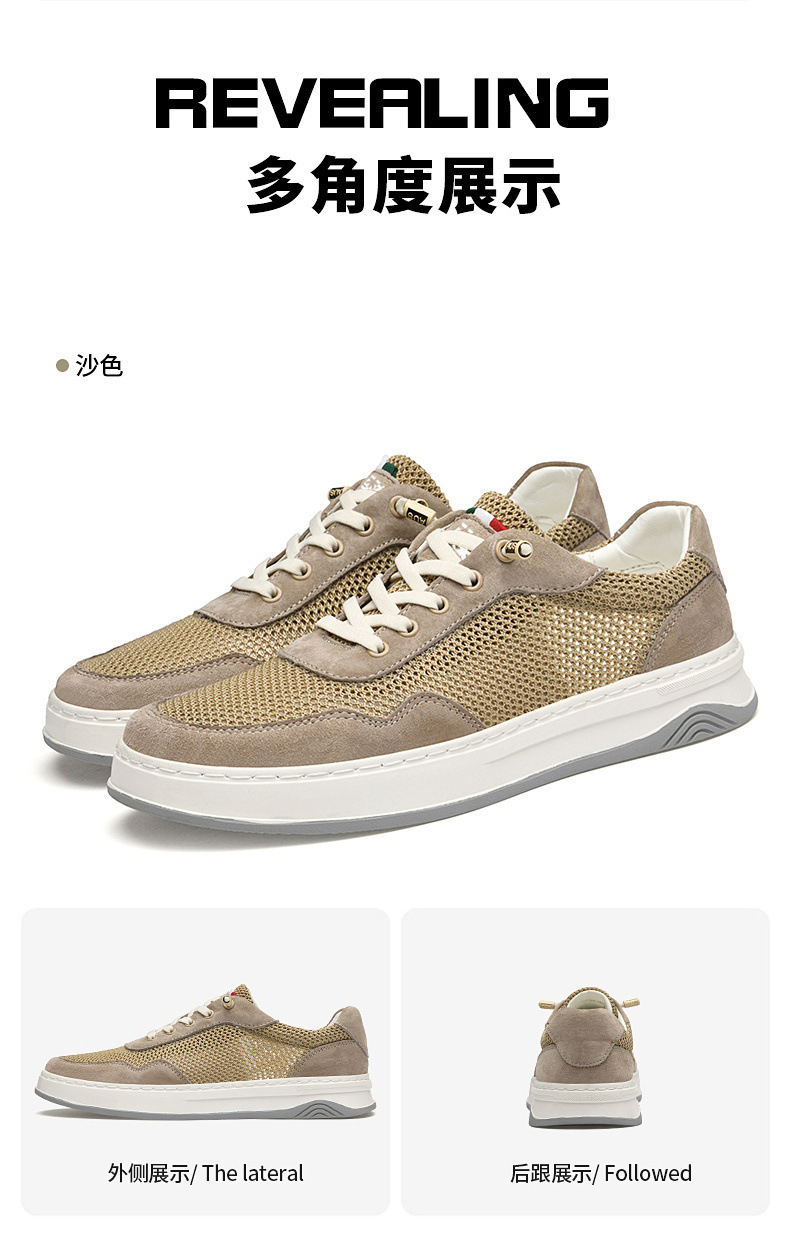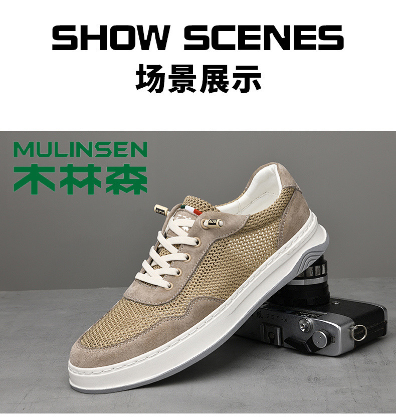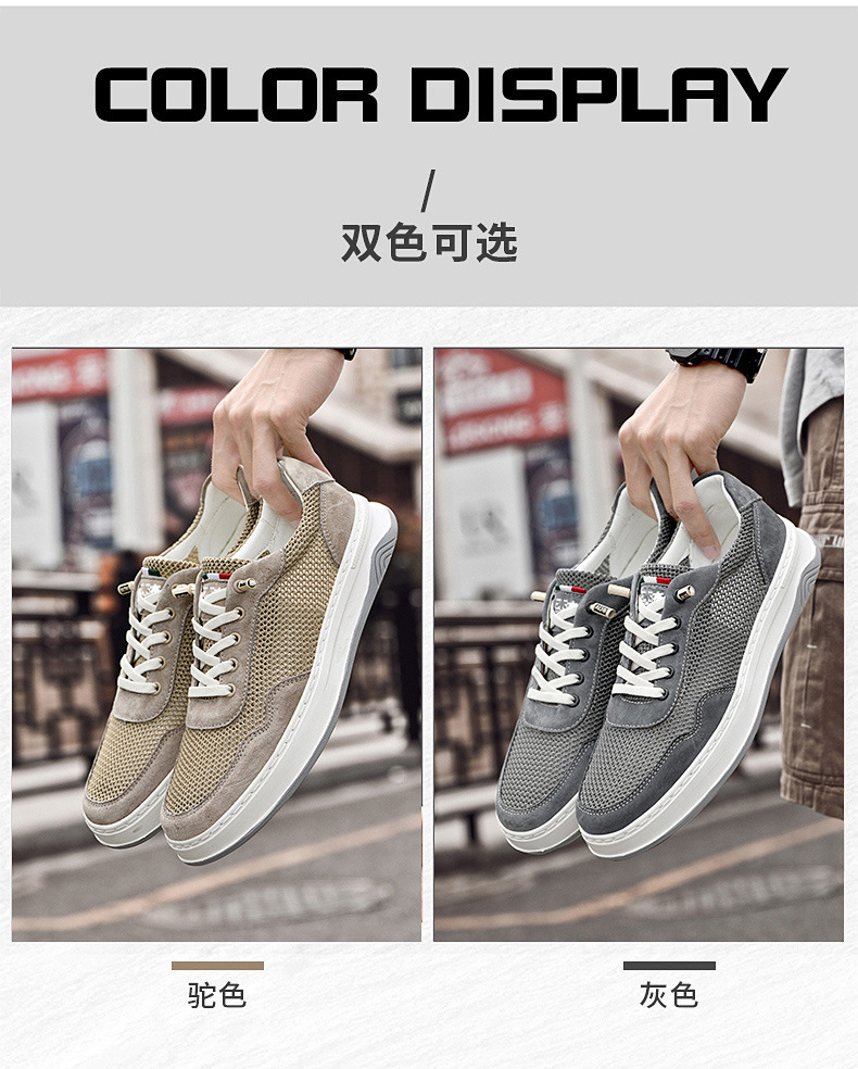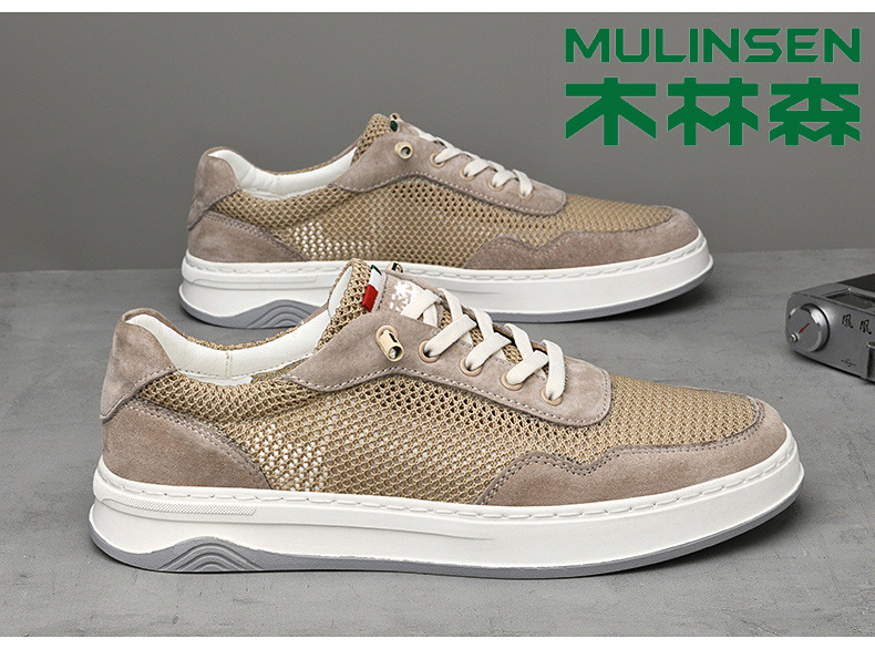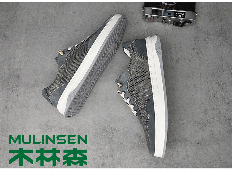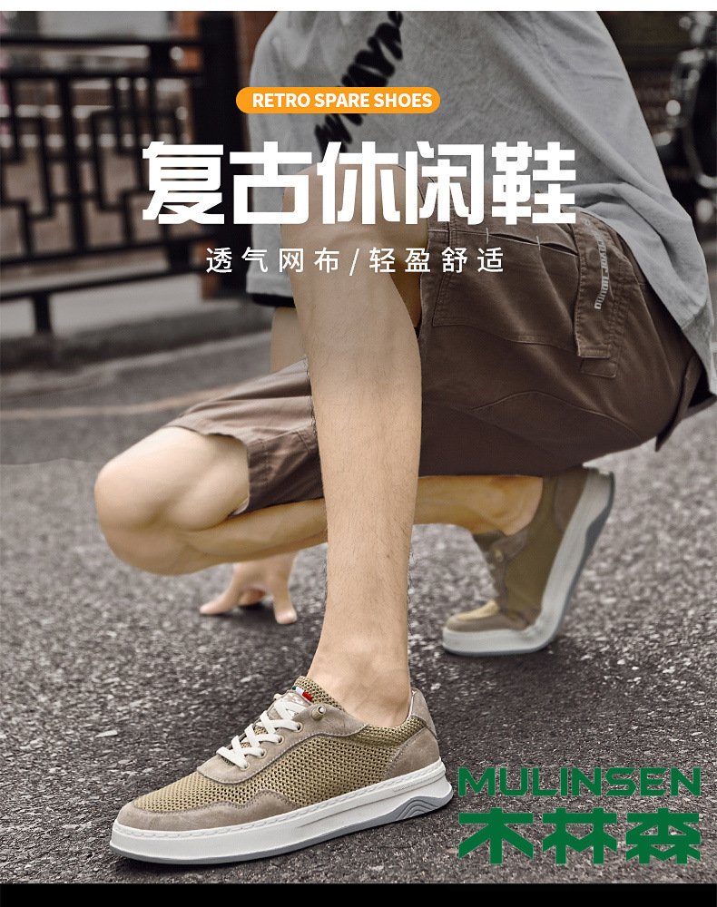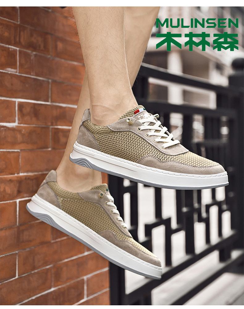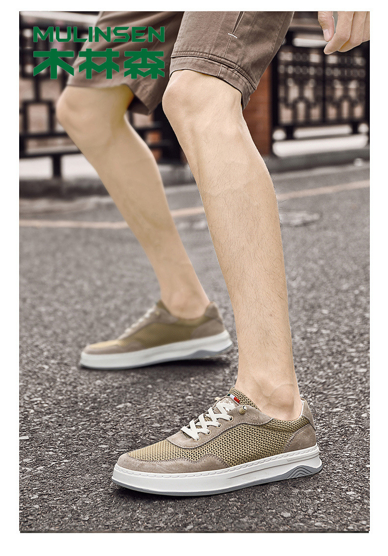 木林森男靴春夏通気性薄いメッシュスポーツカジュアル男性板靴軽やかなメッシュレトロなファッション靴