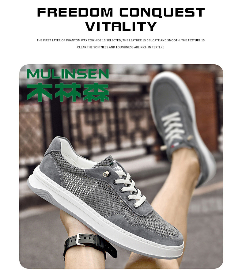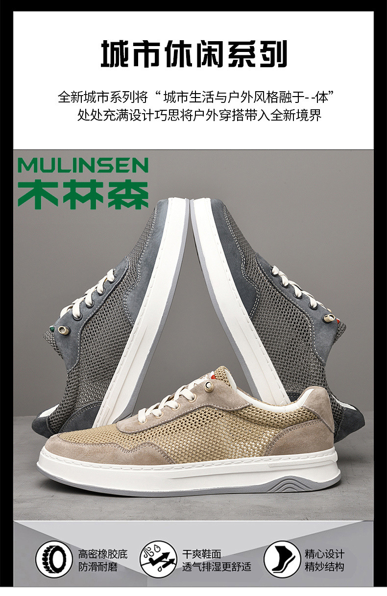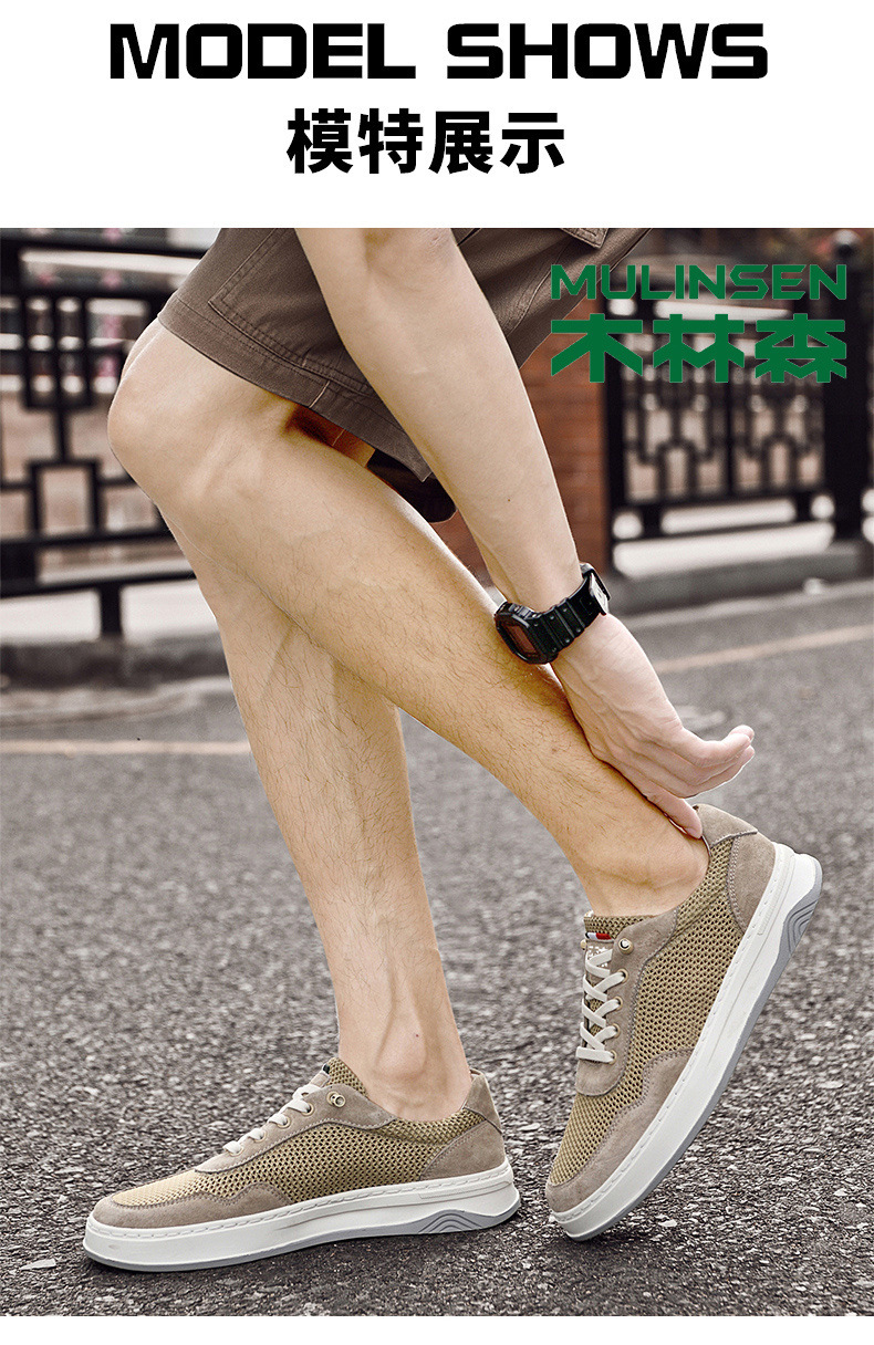 Mulinsen 紳士靴 2025 新しい夏通気性メッシュ薄型トラベルブラックココナッツホットスタイル若者メッシュシューズ