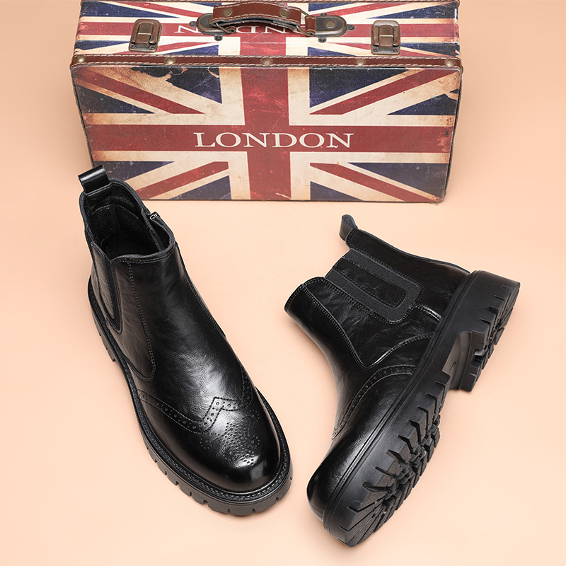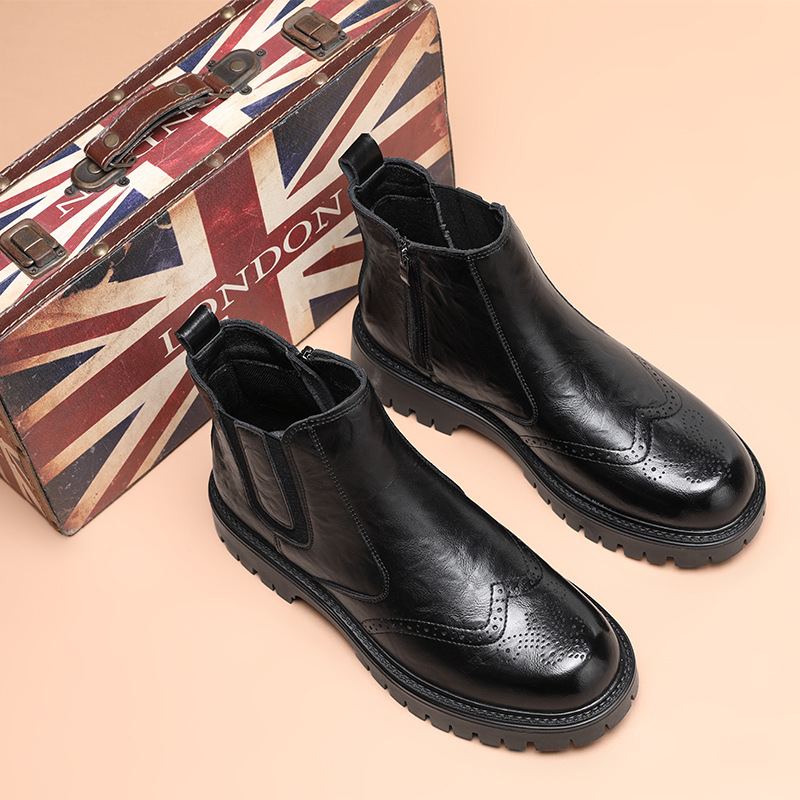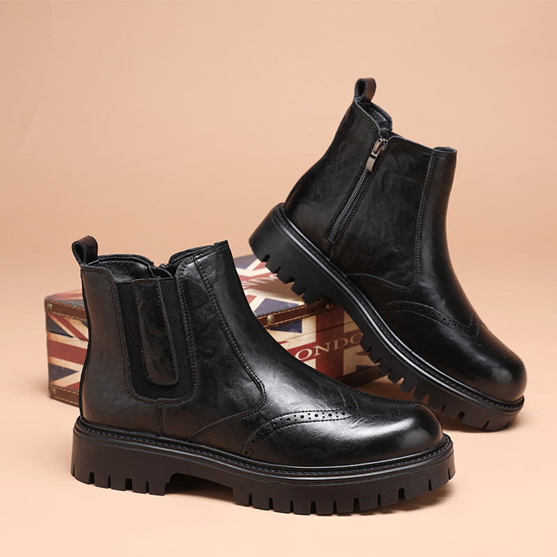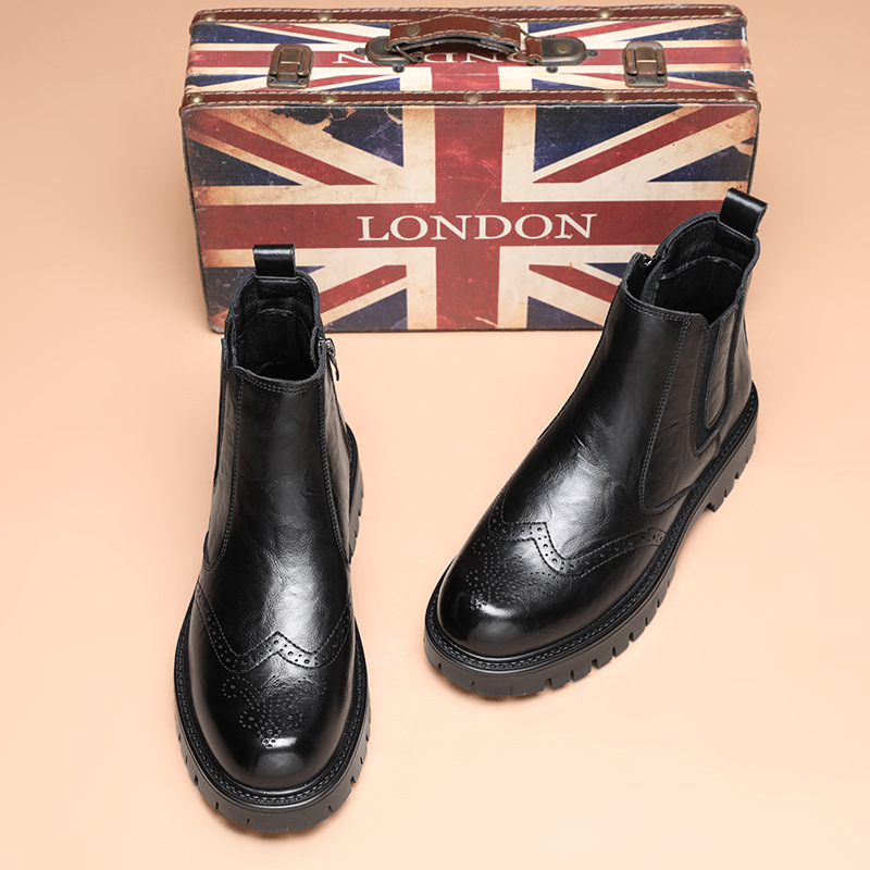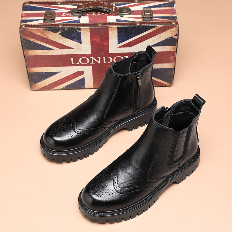 メンズチェルシーブーツ高級感英倫タバコ筒靴彫刻の先のショートブーツ