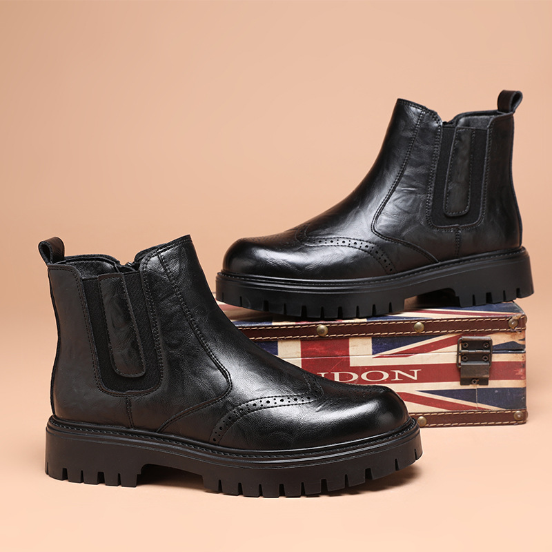 マーティンブーツの男性の厚い底の秋の新型の中で柔らかい皮のショートブーツのファッションの潮流の機関車の中で高くなるチェルシーの靴