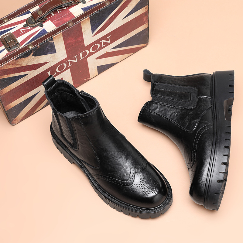 英倫風チェルシーブーツ男性マーティンブーツビジネス高組革靴本革英倫タバコ筒ショートブーツカジュアル春秋