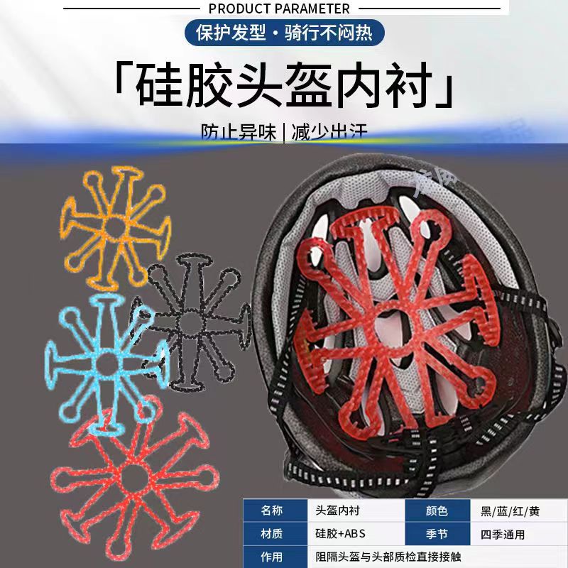 ヘルメットの内側に貼るパッドで髪型を崩さない、通気性があり臭いを防ぐ、サイクリング用の万能シリコンパッド、通気性の良いアイテム