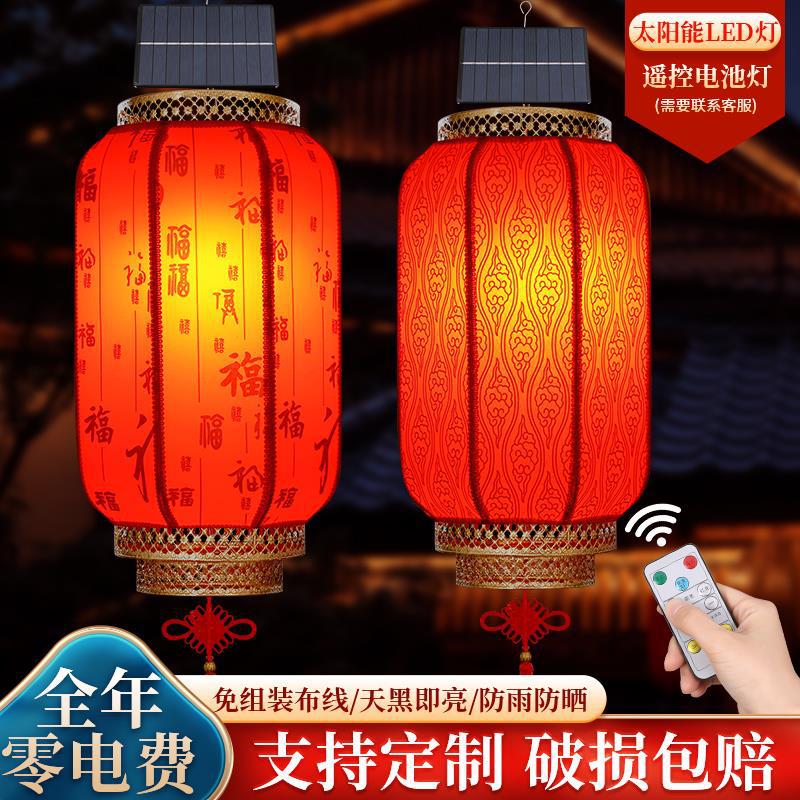 2026年新作 ソーラー式羊皮ランタン ヴィラの門、バルコニー、中庭用 新築祝い吊り下げ飾り 大型赤提灯