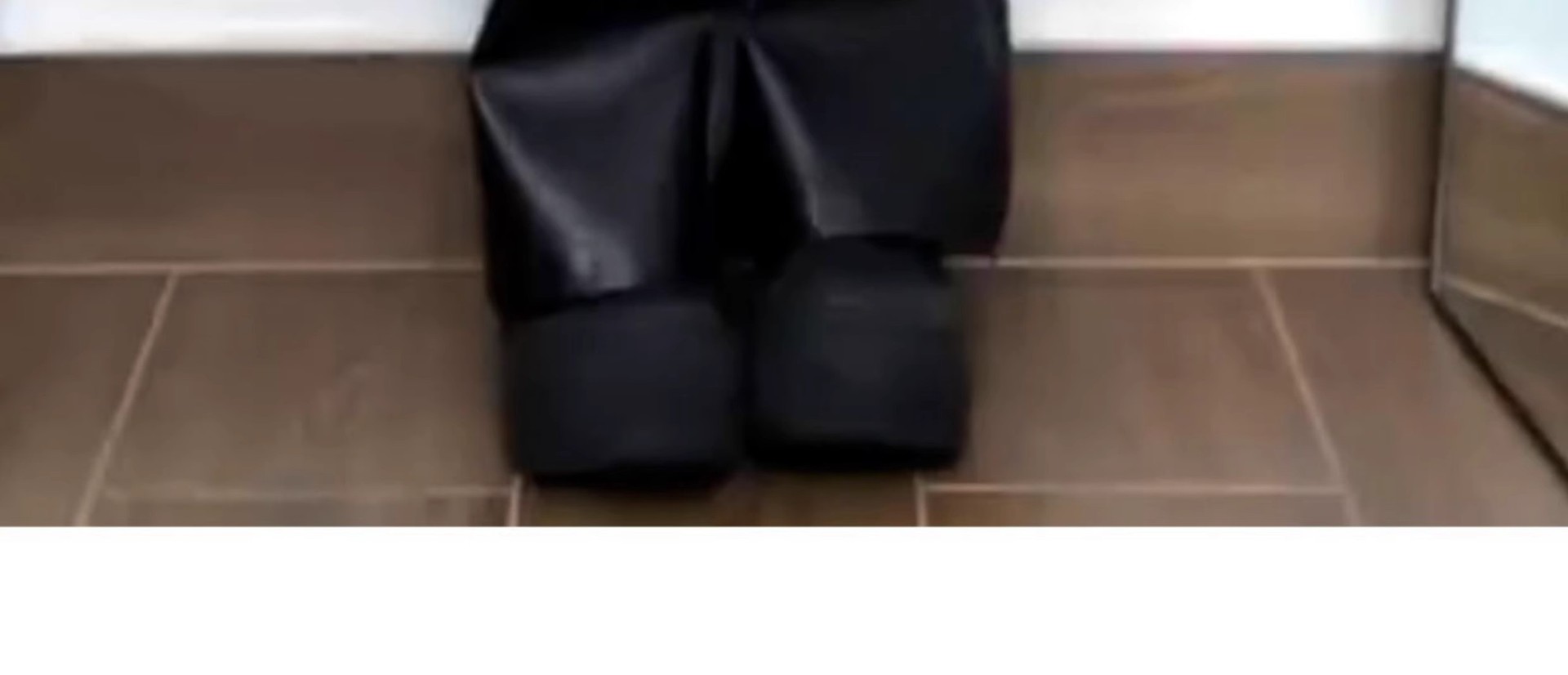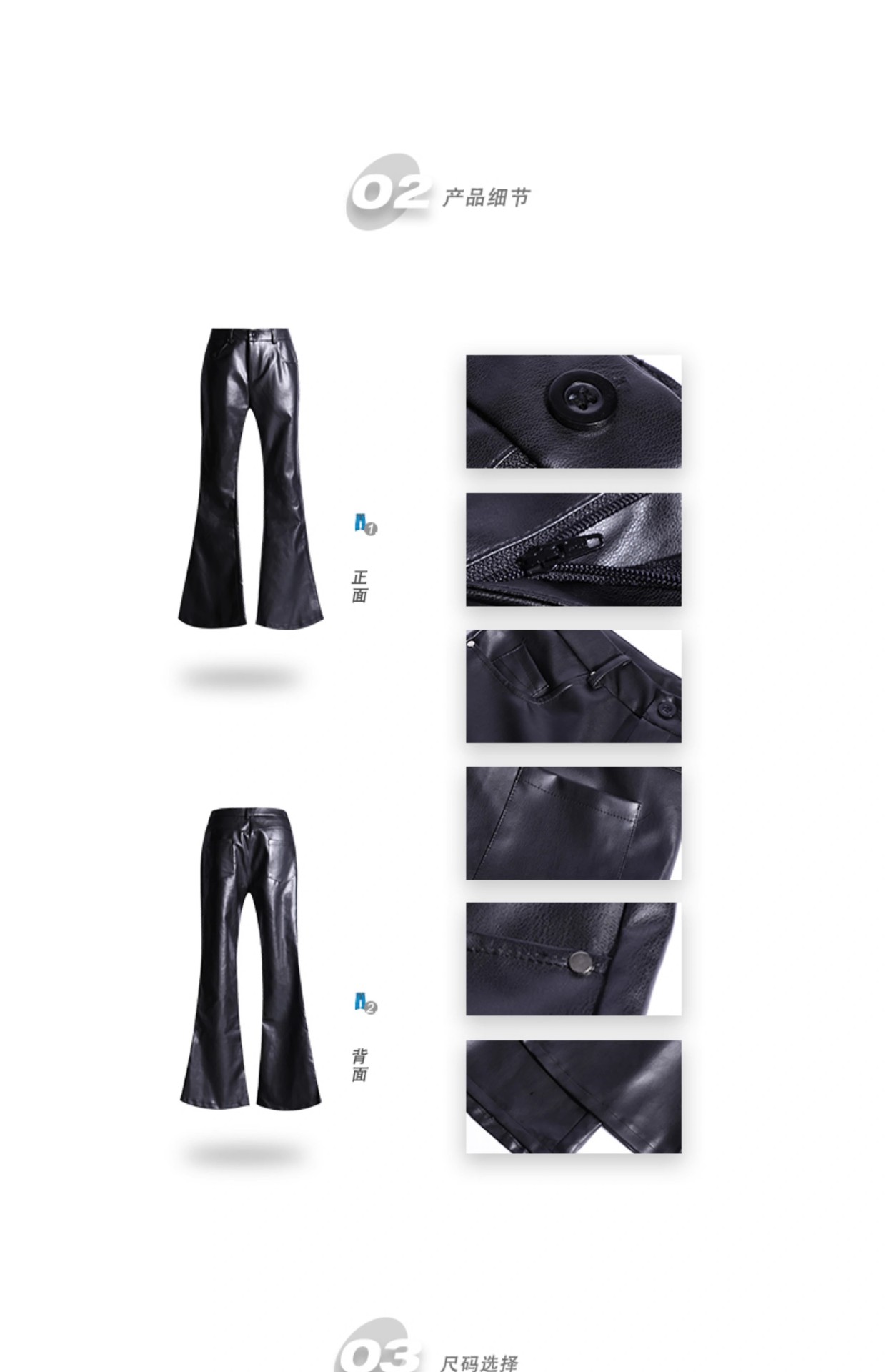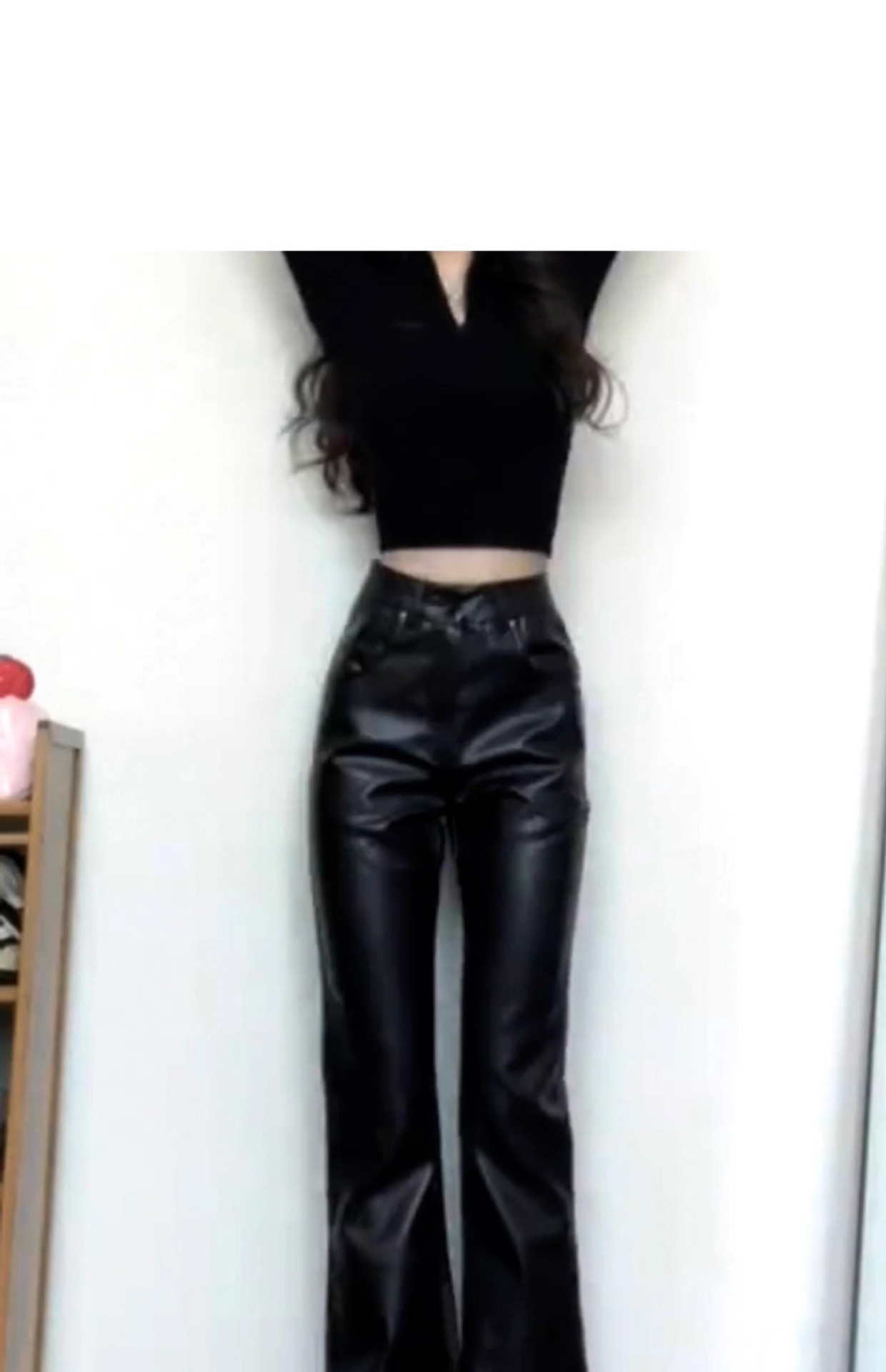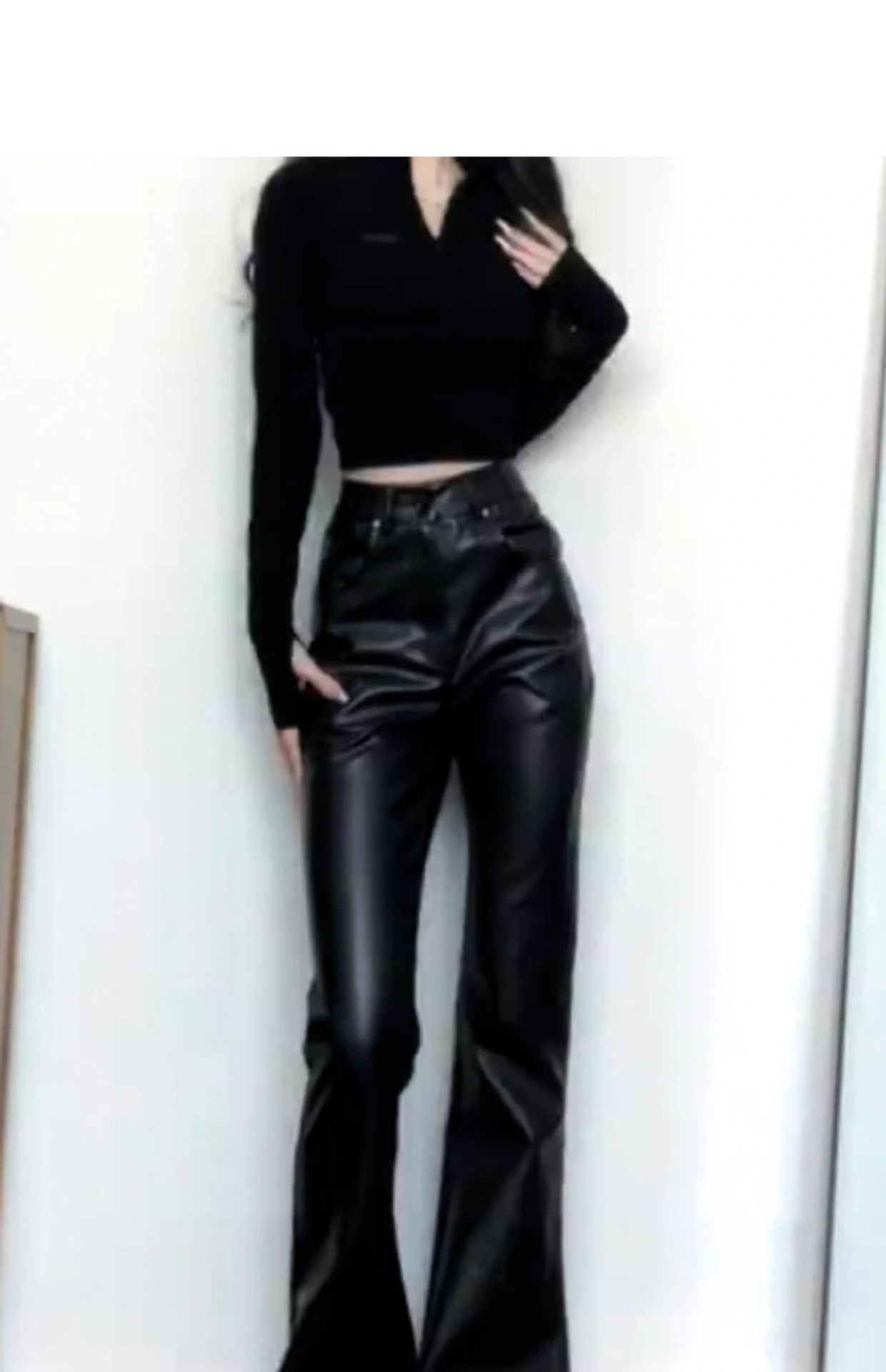 アメリカ式の黒いマイクロラッパpuの皮のズボンの女性の2025年の春秋の新型の小さい背の高い腰のゆったりしているラッパのズボン