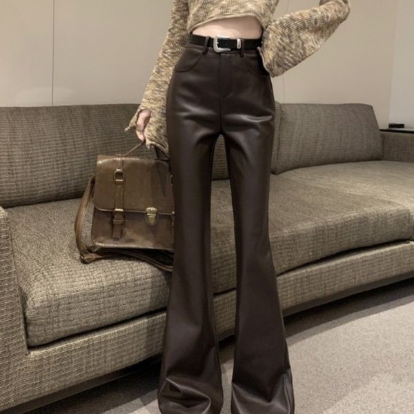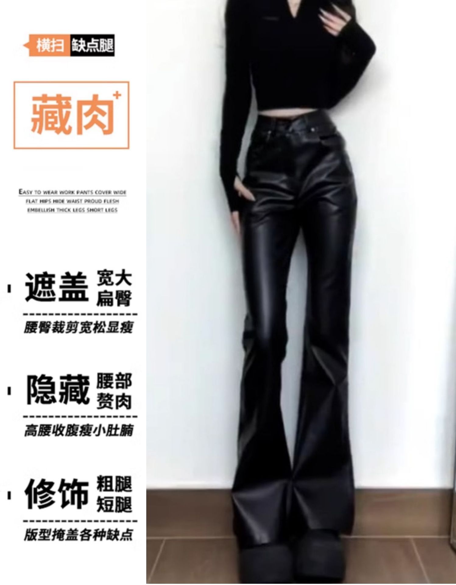 美拉德辣妹高腰微喇皮裤女秋季2025新款遮肉显瘦修身休闲裤喇叭裤