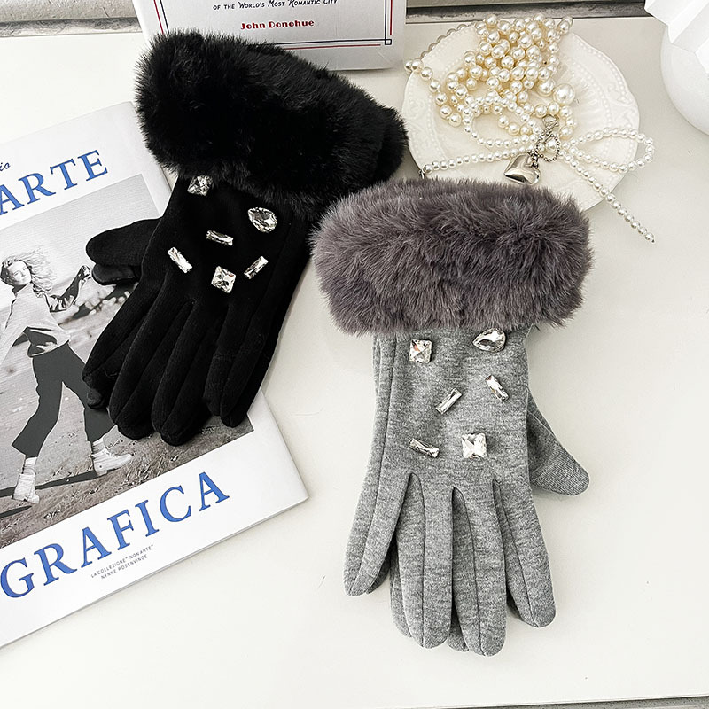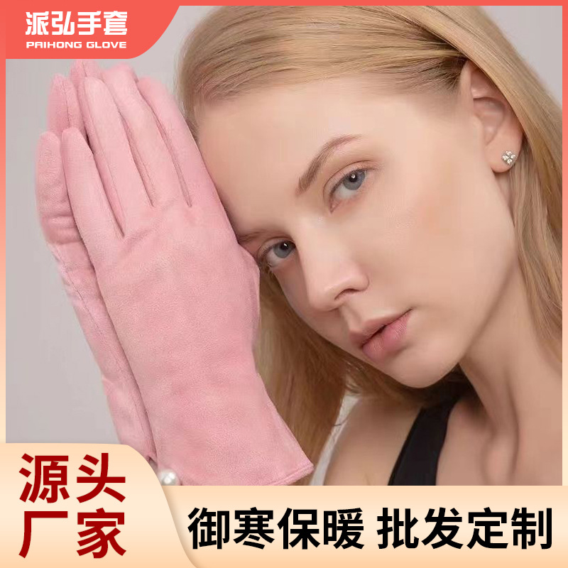 秋冬のスエードの真珠の手袋の女性の保温は厚いです。