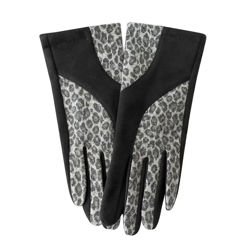 ヒョウ柄の保温手袋をつなぎ合わせて、女性ファッションのスエードの冬の手袋を厚くして防風します。